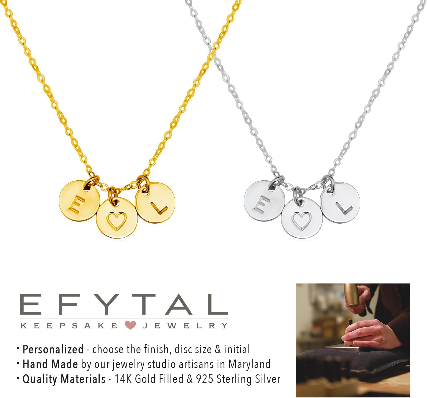 EFYTAL Initial Necklaces for Women, 14K Gold or 925 Sterling Silver Initial Necklace, Custom Necklace, Personalized Pendant