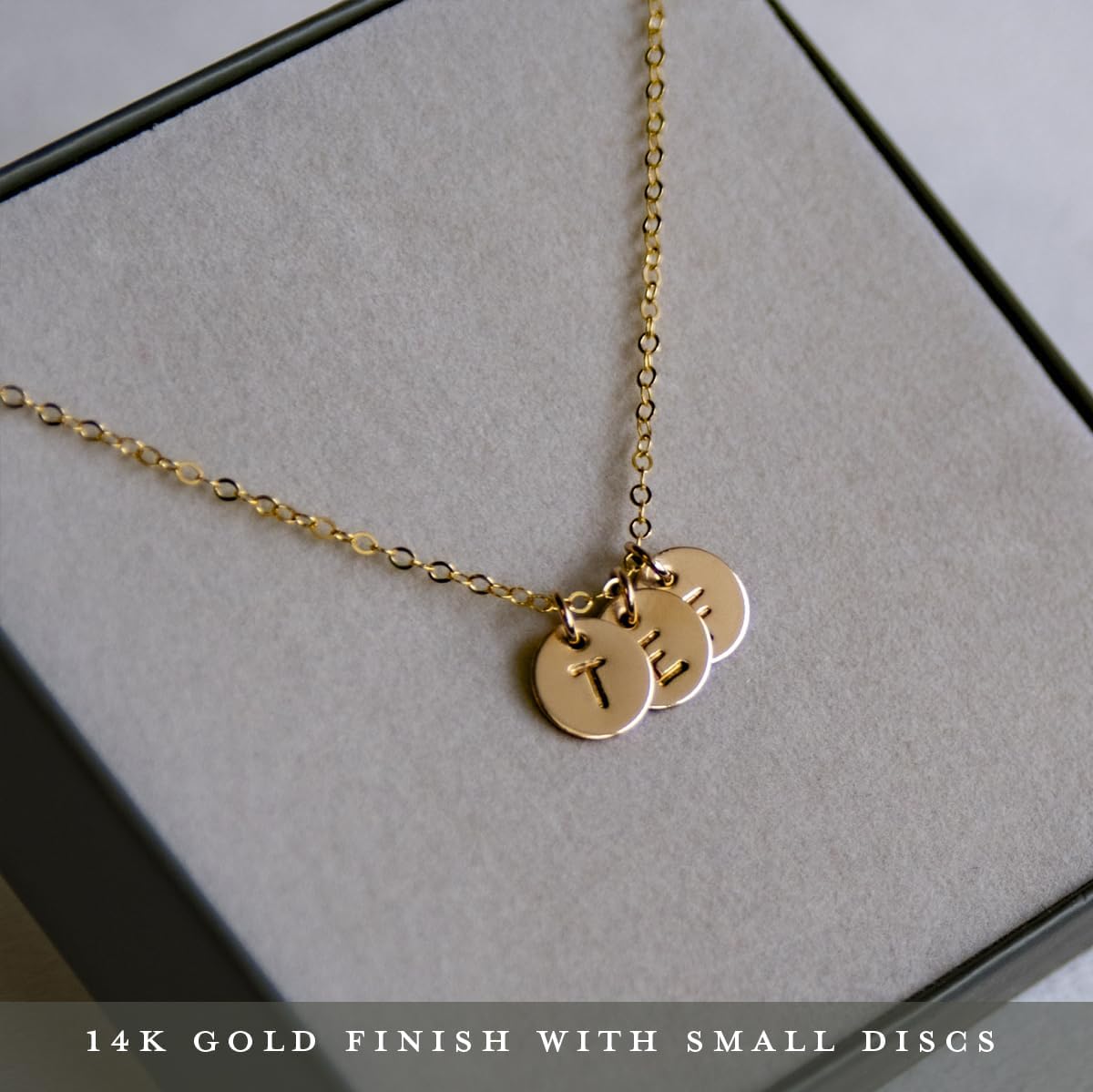 Initials of your choice on dainty 14k Gold Filled disc pendants. Also available in Sterling Silver. Perfect for any loved ones initials, including daughters, sons, sisters, friends, significant others, or even your own initials! These are tiny little pendants….dainty yet durable. This necklace comes with a 16″ or 18″ cable chain. Of course, if you would like a different length just ask! We love our customers and are happy to accommodate you! Dimensions: Pendants – 3/8″ (1cm) diameter. Chain- 16″ (40.6cm) or 18″ (45.6cm)