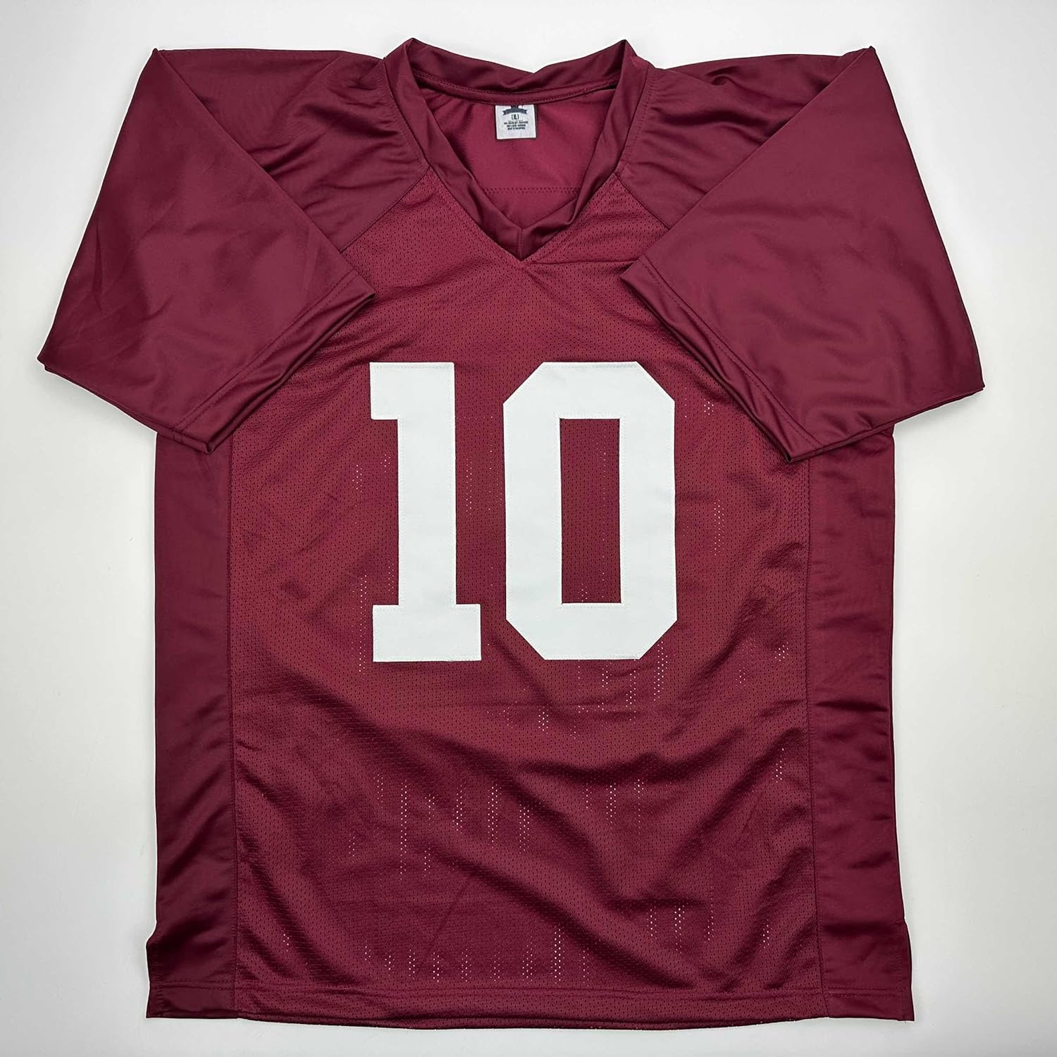 For sale is a facsimile autographed collectible jersey. The reprint facsimile autograph is an exact copy of the athlete’s autograph, created by a laser with heat transfer vinyl. A facsimile autograph presents you with a great opportunity to proudly rep your favorite athlete without spending a small fortune for an authenticated autograph. The jersey has no brand names or logos. It is a custom jersey and was not manufactured by or in any manner associated with any professional sports league or manufacturer. This custom jersey carries no professional sports league or team designation. The item is a sports collectible. The custom jersey displays the name and number of the player along with an affixed reprinted facsimile autograph. Size is Men’s XL. No other sizes are available.