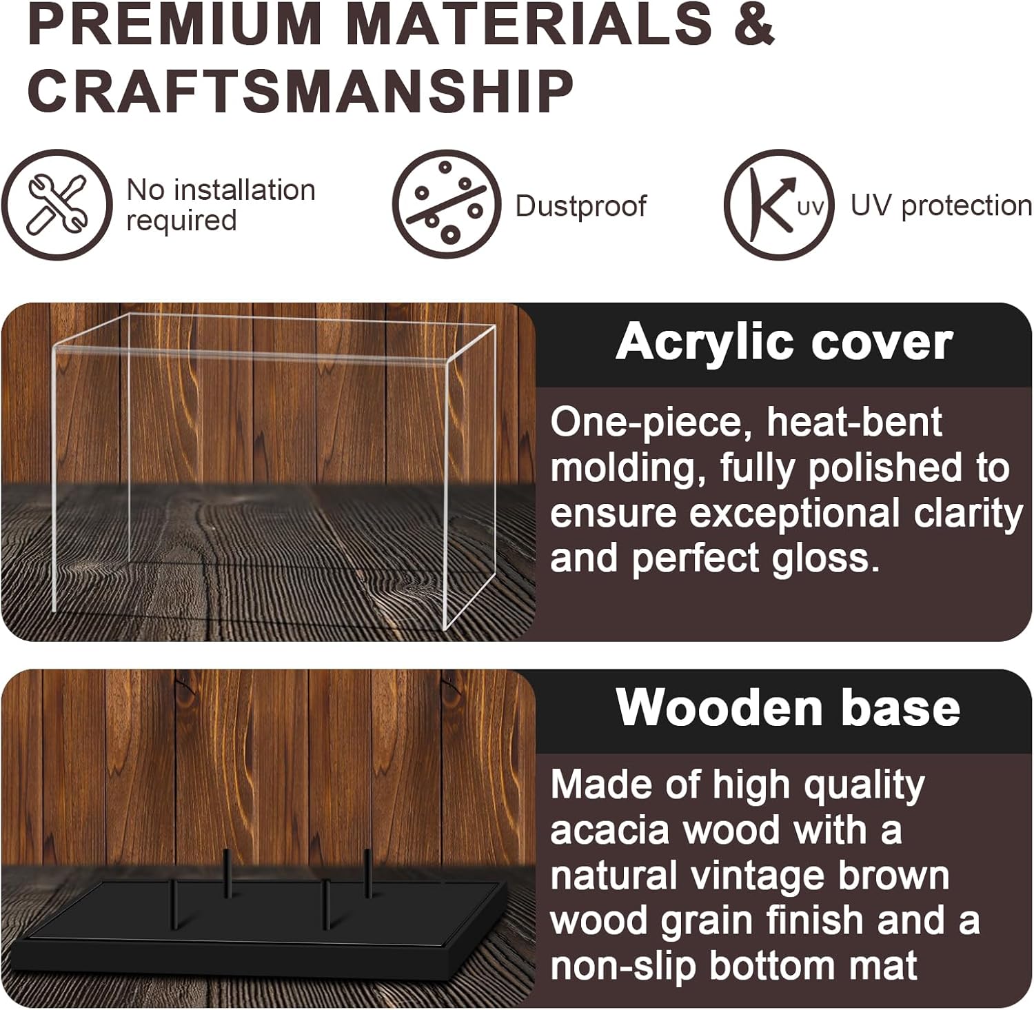 Premium UV-Protected Acrylic & Solid Wood Construction: Crafted with museum-grade acrylic walls 30% thicker than standard displays (3mm thickness), the ZenGlyph football case features advanced 99% UV-blocking technology to eternally safeguard autographs from fading. Its hand-polished crystal-clear enclosure harmonizes with a rugged acacia wood foundation, creating an heirloom-quality preservation system designed to protect your memorabilia for generations.