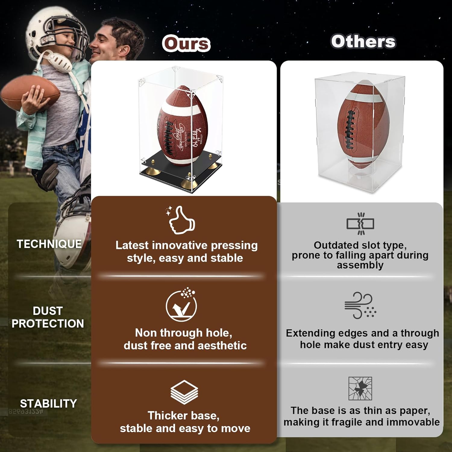 【Luxury Decorative Effect】Premium, high-transparency acrylic provides an elegant and modern look, giving your beloved football a luxurious home protected against dust and damage. It displays your autographed football from all angles with a 360-degree view