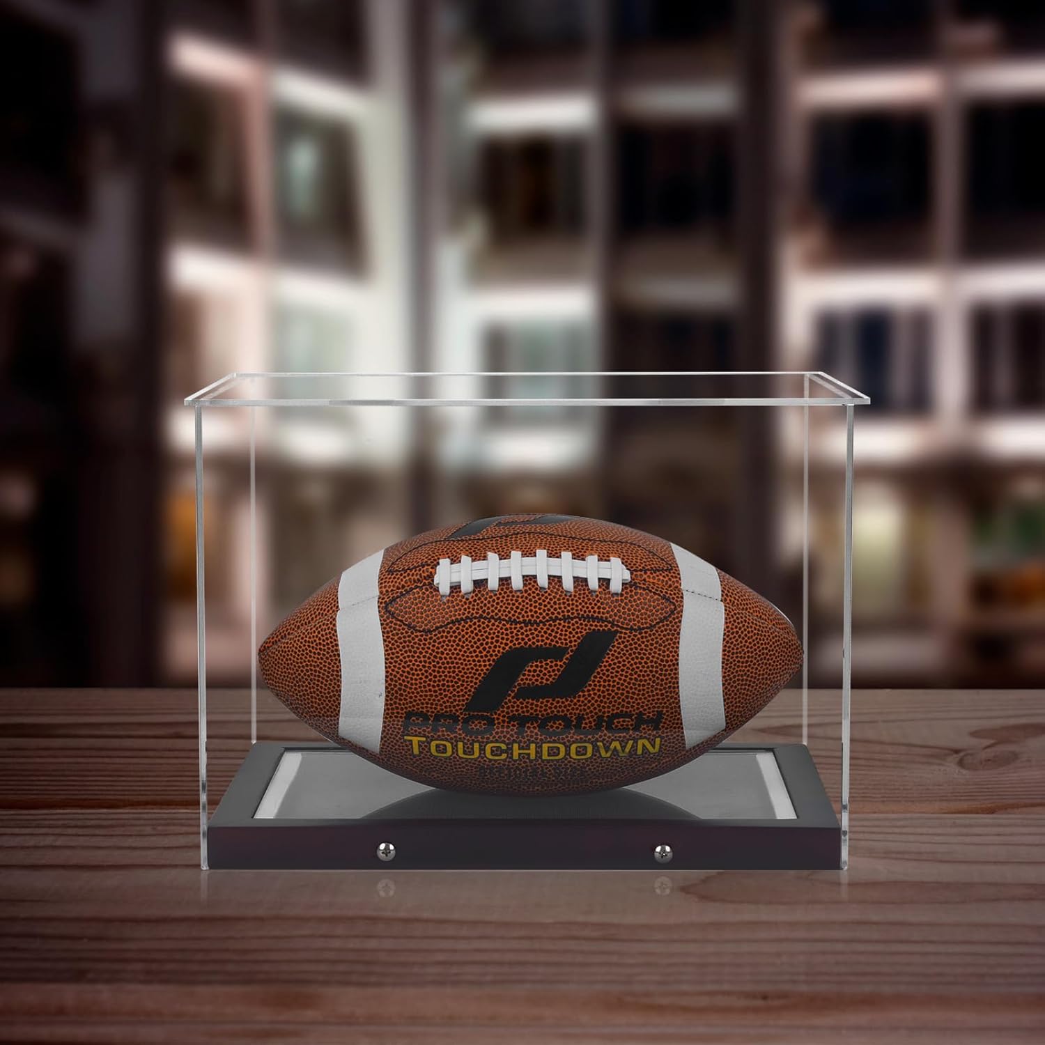 Matches home and office decor. It’s a shockable and eye-catching football display case.