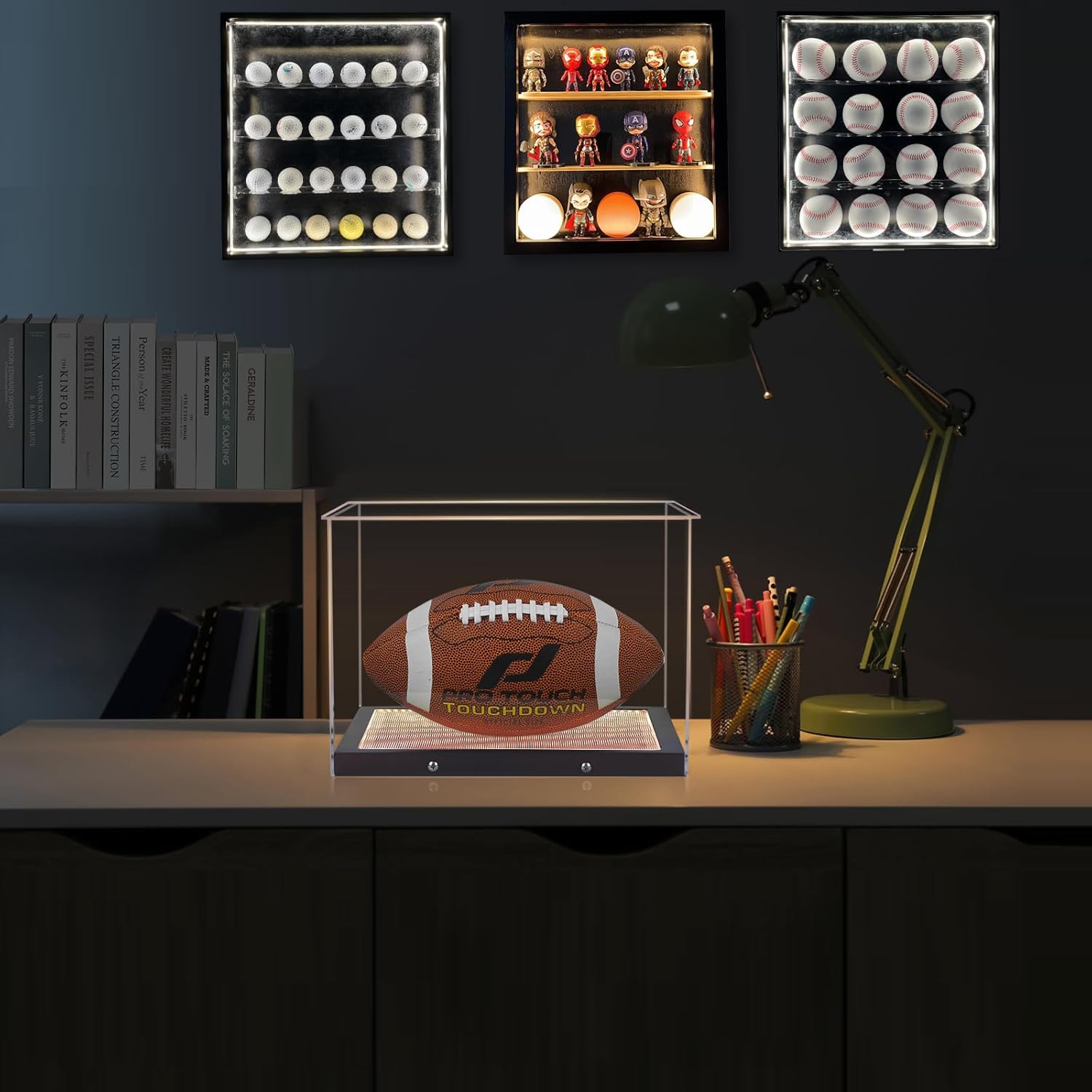 Football Display Case With Led Light. Dimmable, Beautifully Diffused, and Non-dazzling Light.