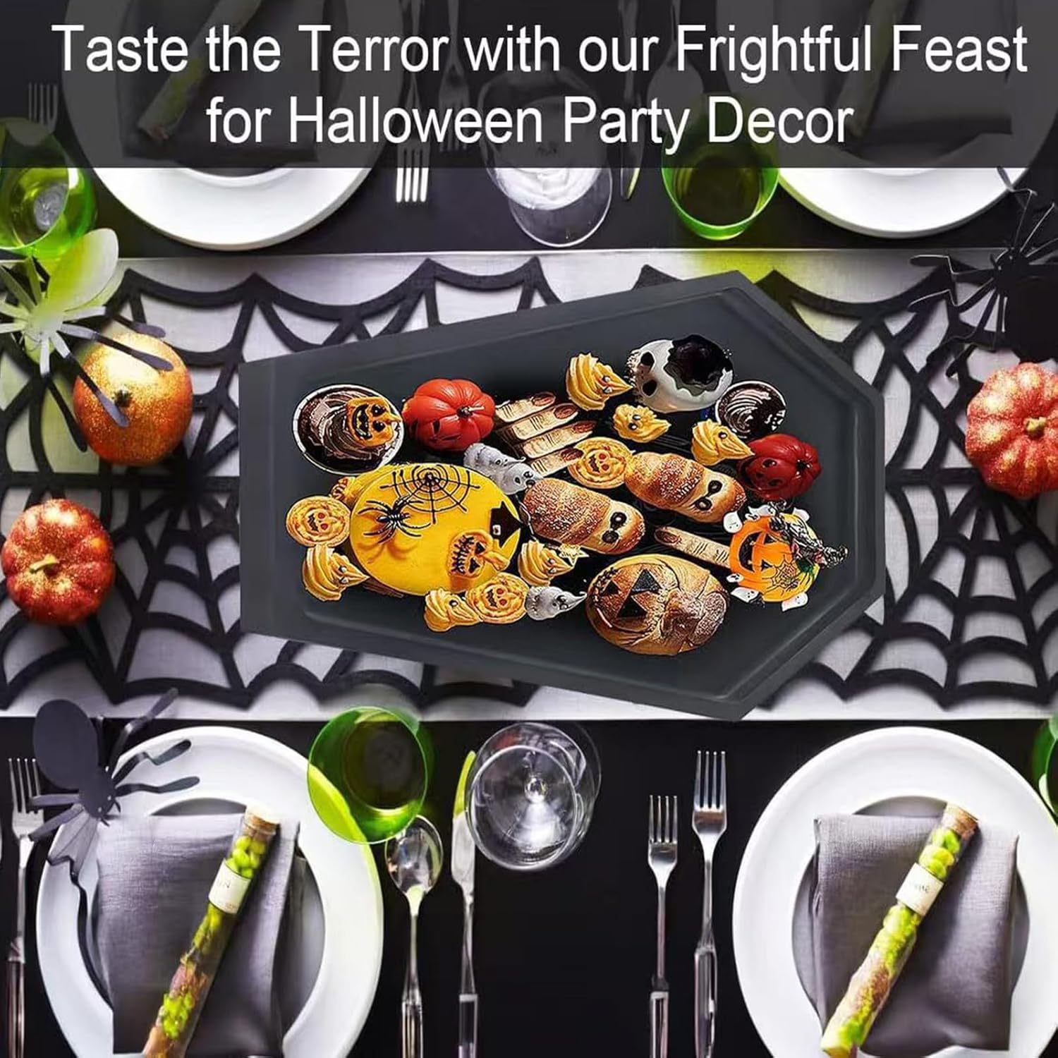 This Wood Coffin Shaped Charcuterie Board Tray is Made From Naturally Durable and Renewable Solid Pine, It’s A Bit Heavy About 0.8 lb, But It’s Easy to Carry and Use, Great for Spooky Gatherings, This Tray’s Skeleton Design Peeks Through Food for A Fun Surprise.