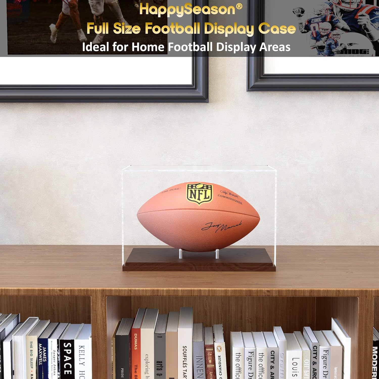 READY TO USE: Arrives with a handcrafted one-piece acrylic cover. Just peel the outer protection film and simply place your football inside and display immediately.