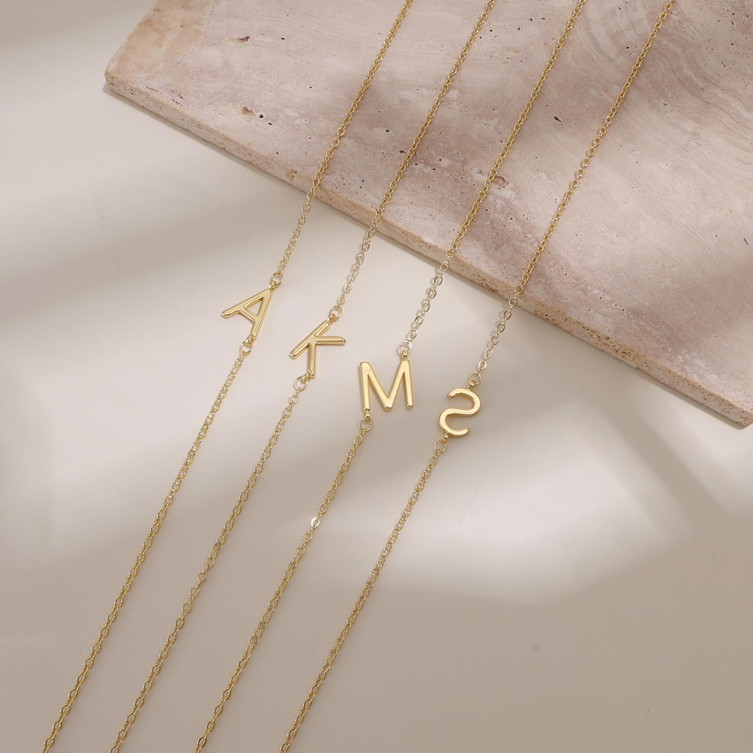 These dainty letter necklaces are 14K gold plated and made of high-quality brass. We only use high quality metals. These Gold initial sideway necklaces are no stimulation to the skin, Safe and comfortable to wear.
