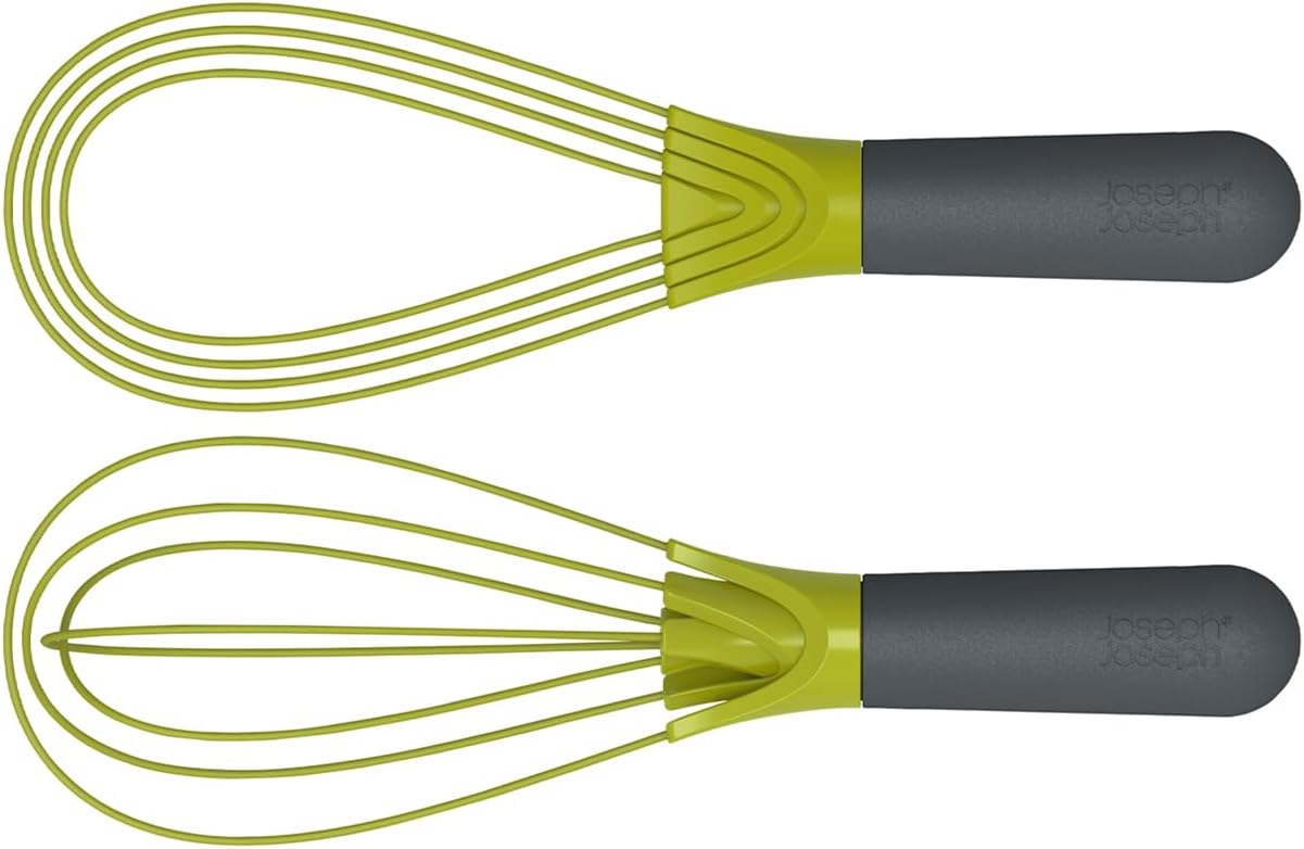 With a simple twist of the handle, this clever design switches between two different types of whisk. In its closed or flat position, it’s ideal for stirring sauces or making gravy as its heat-resistant, silicone-coated stainless-steel wires are perfect for scraping and combining ingredients together. In its open position, it becomes a conventional balloon whisk that’s perfect for whipping cream or beating egg whites into peaks. Suitable for non-stick cookware, it also folds flat for compact storage. Silicone wires heat-resistant up to 200˚C/392˚F. Dishwasher safe.