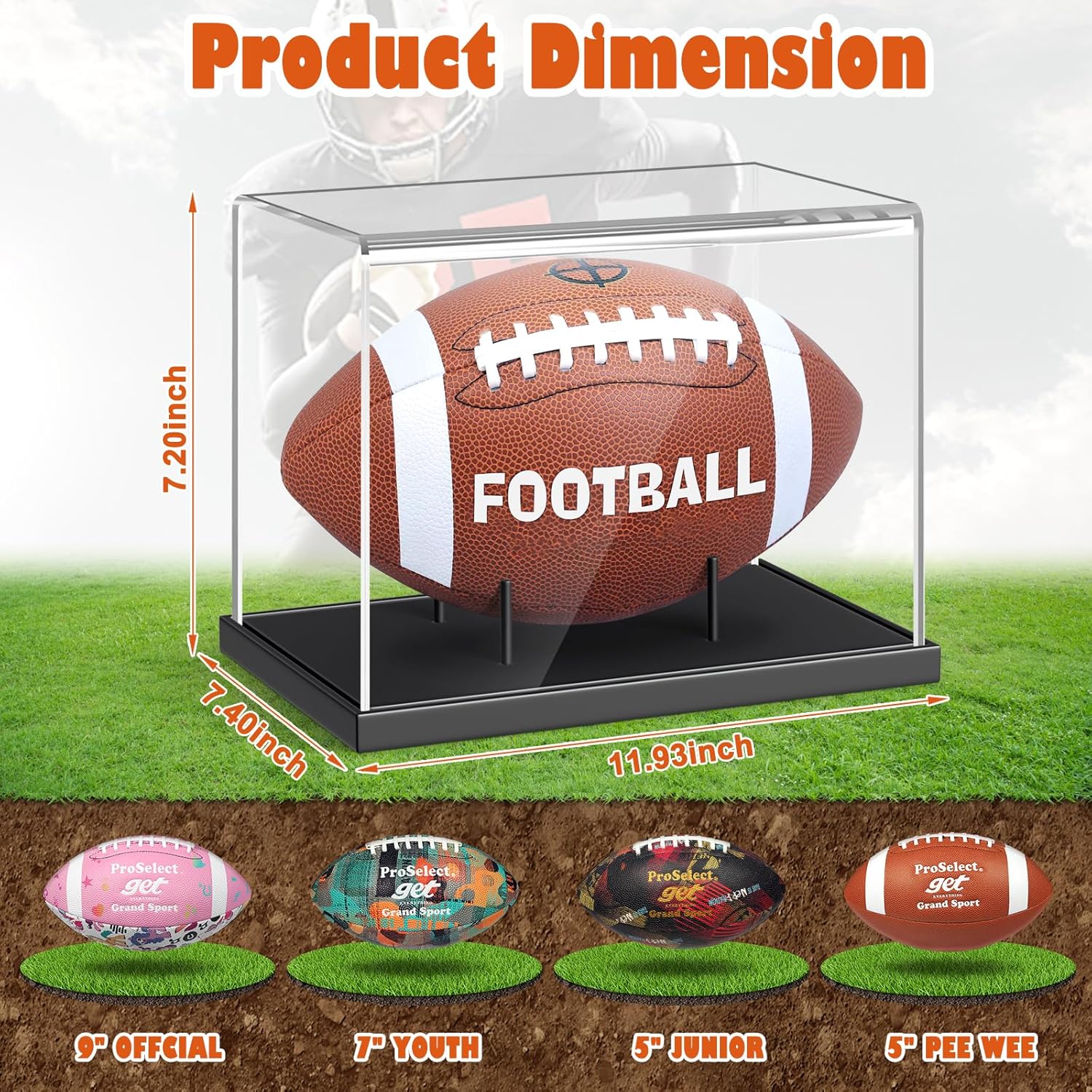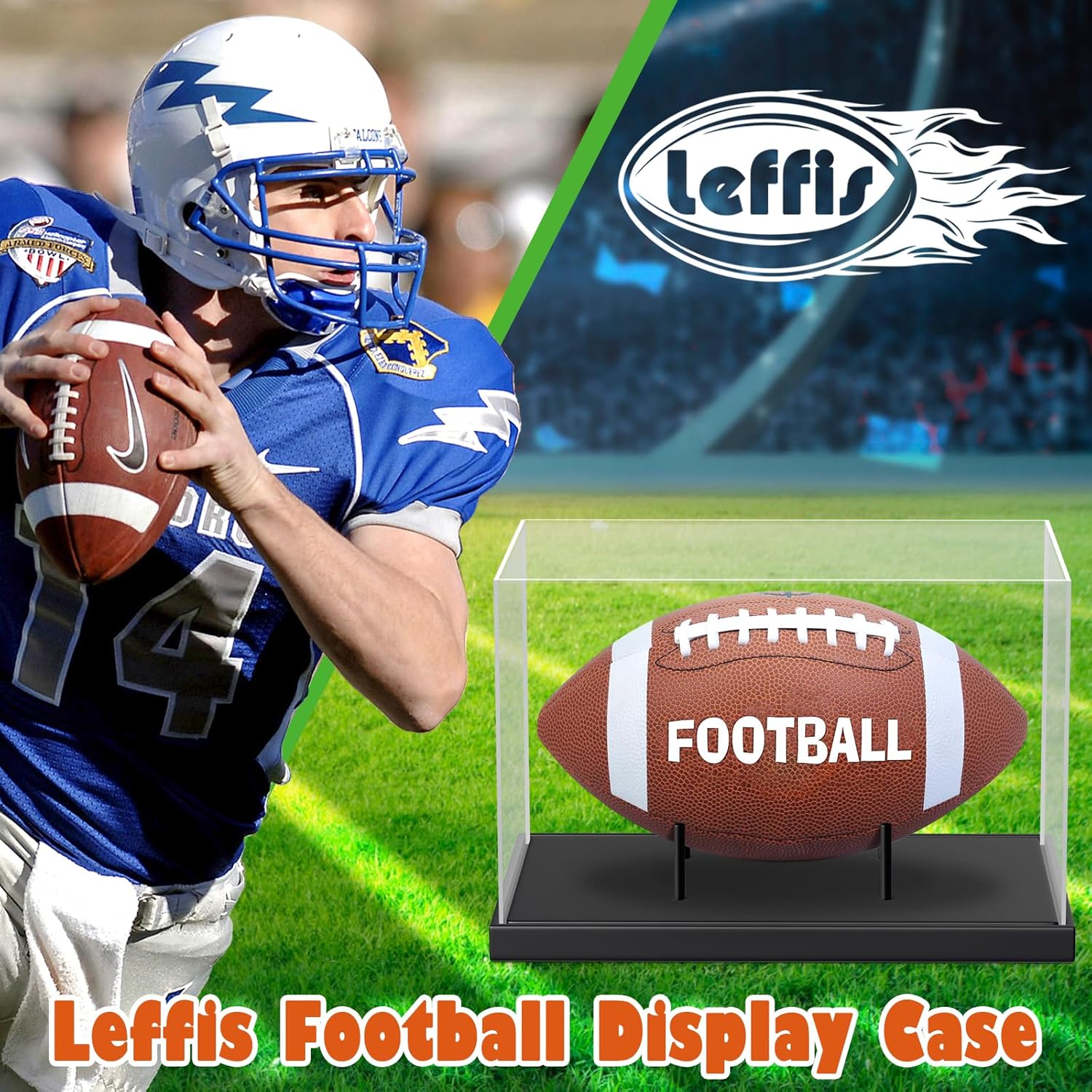 Leffis Football Display Case Full Size, Acrylic Football Case Display Clear, UV Protected Football Display Box Case, Football Cases for Autographed Football, No Assembly Required