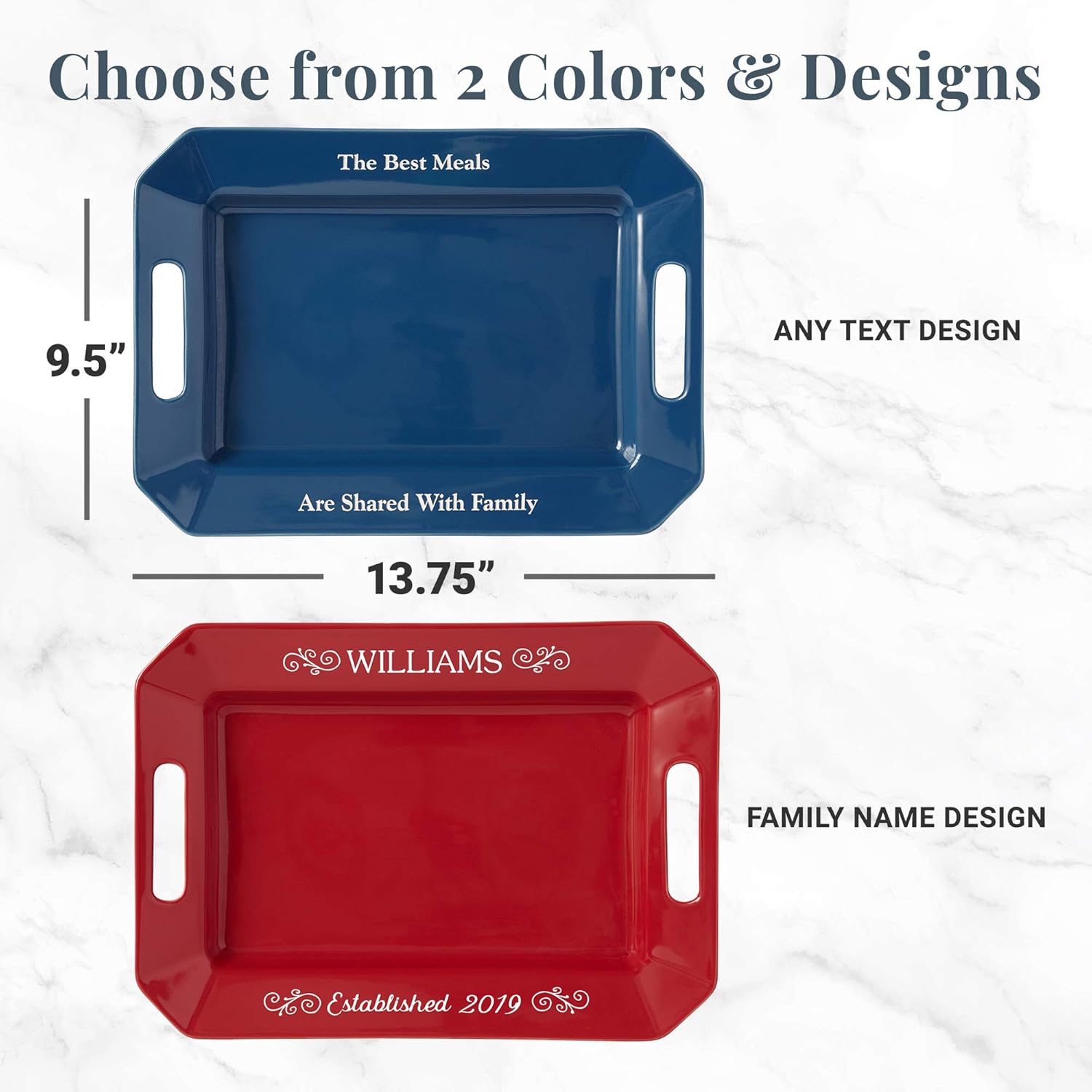 Let’s Make Memories Personalized Stoneware Entertaining Platter – For Entertaining – Navy Platter – Ceramic Tableware – Customized With Family Name