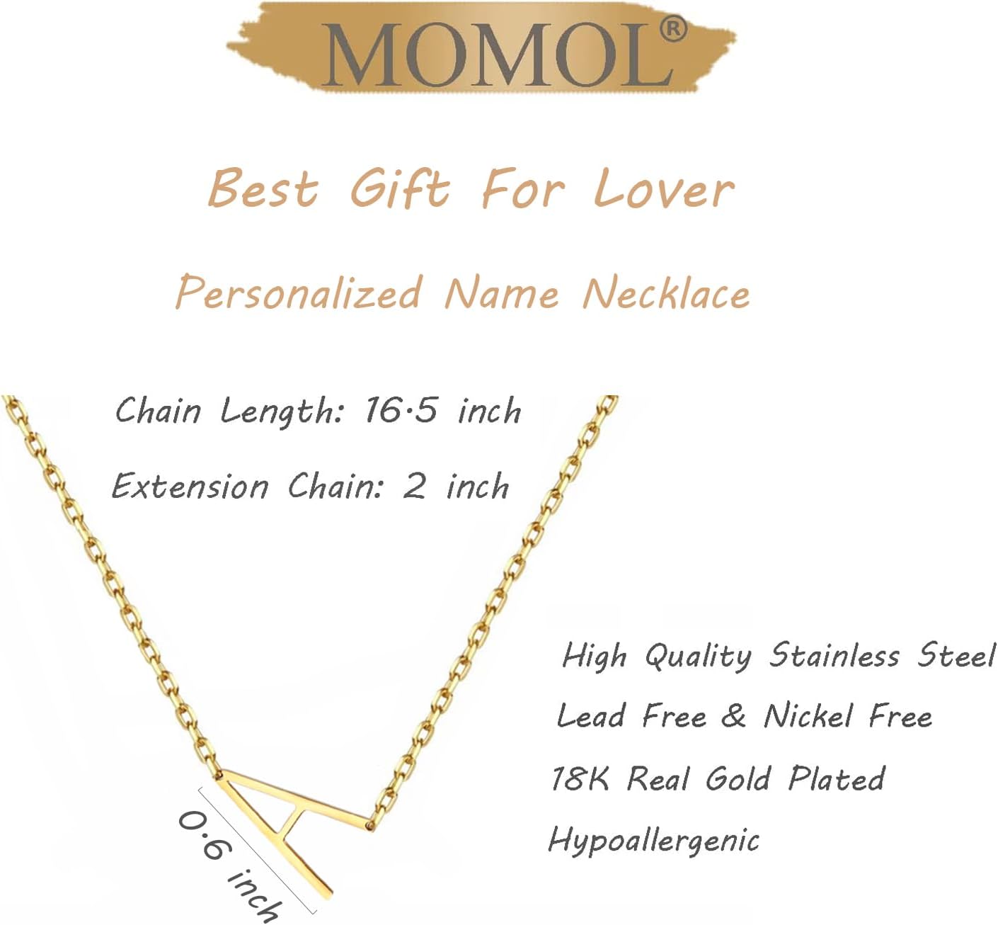 MOMOL Sideways Gold Initial Necklace for Women 18K Gold Plated Stainless Steel Dainty Letters Pendant Personalized Name Necklaces