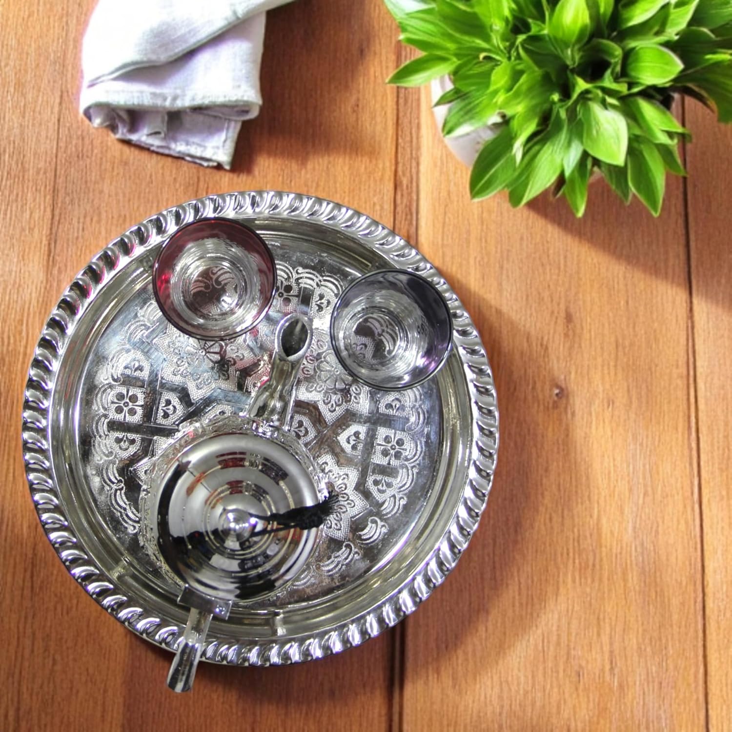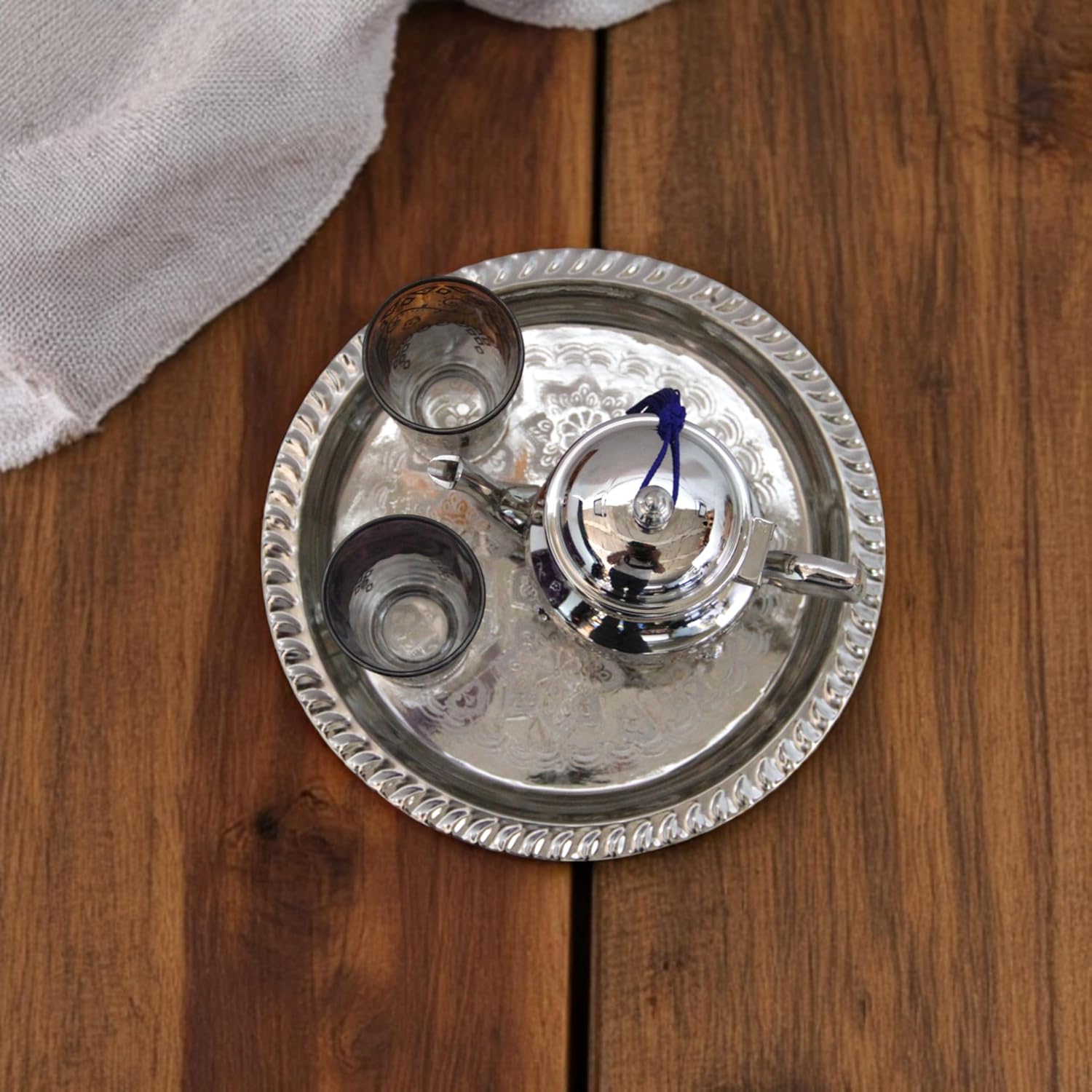 Elegant Moroccan Silver Tray for Serving & Home Décor