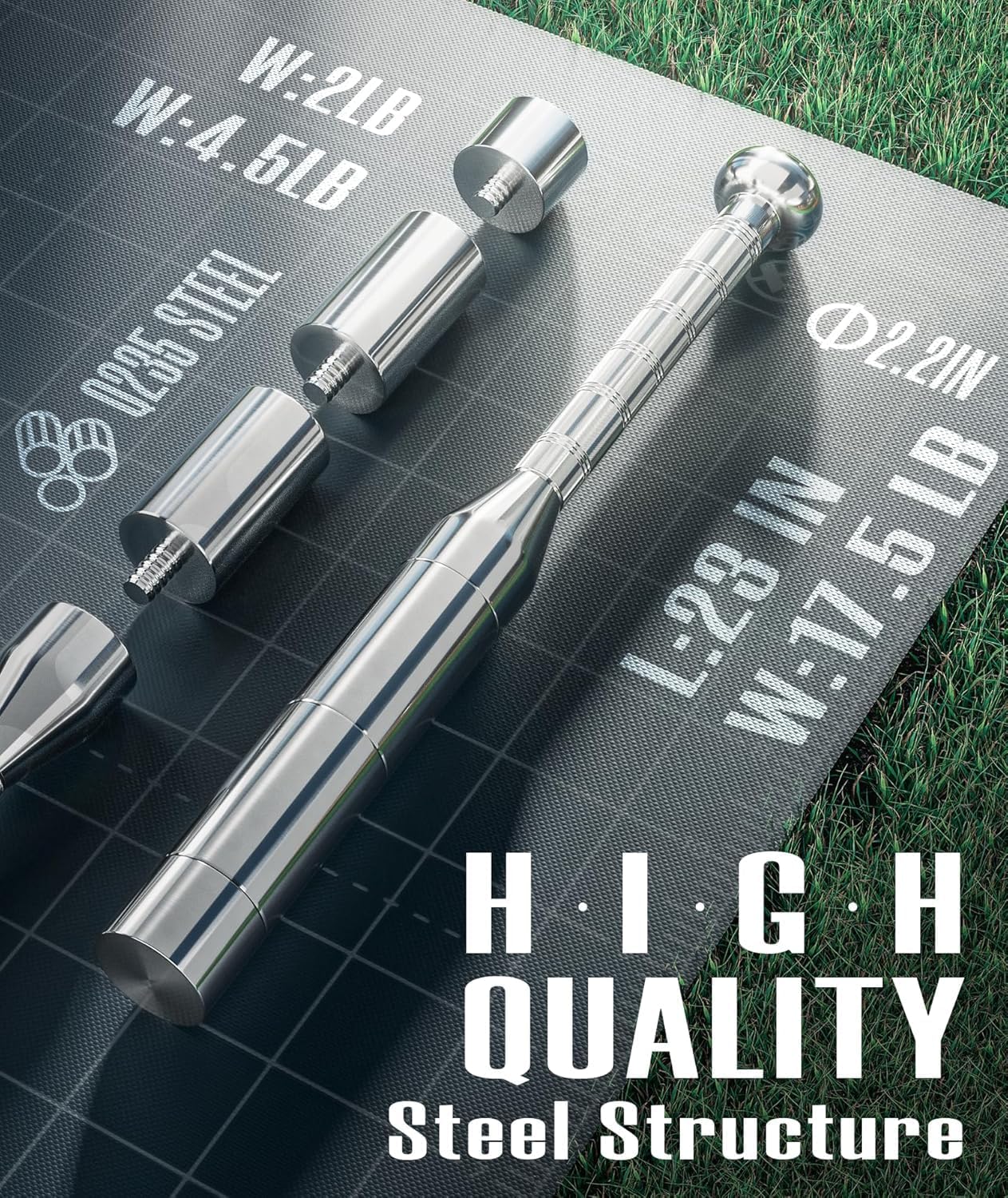 【Durable Q235 Steel Indian Clubs】Designed for durability, our All Steel Indian Clubs are built to withstand your toughest workouts. Each club is made of heavy-duty steel, ensuring long-lasting performance. The handle features a round bulge at the end, providing a comfortable grip and enhanced safety during your exercise routines.