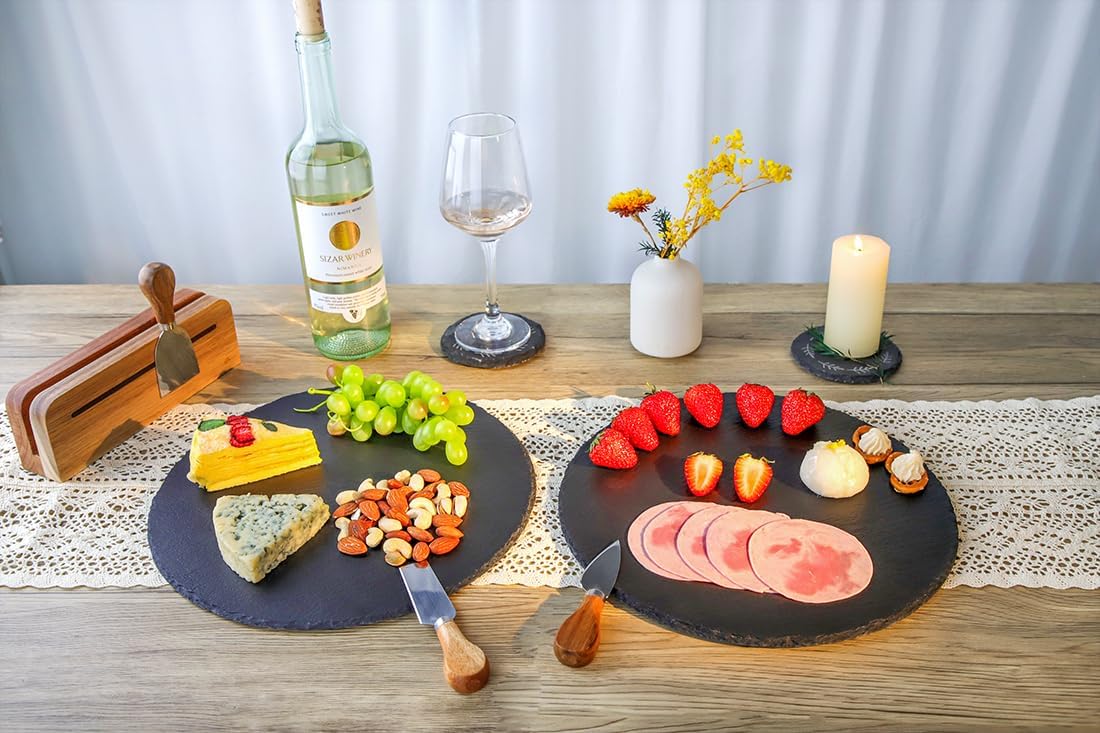 Elevate your charcuterie game with a sleek slate board—the ultimate canvas for cheeses and cured meats. Its matte-black surface highlights vibrant flavors, while natural non-porous properties preserve taste integrity, unlike porous bamboo. Durable, scratch-resistant, and effortlessly chic, slate keeps cheeses cool and pairs seamlessly with wine or desserts. Perfect for dinners, parties, or gourmet picnics, it transforms spreads into art. Add chalk labels or fresh herbs for a personalized touch.