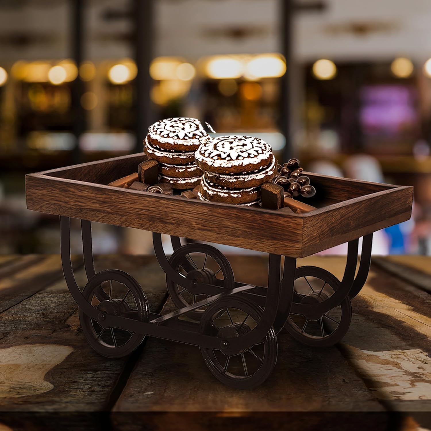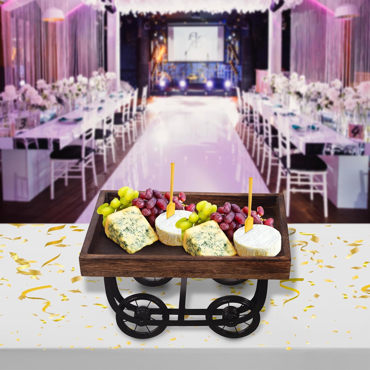 Wheel Design: Tray has convenient 4-inch casters for easy movement and serving.