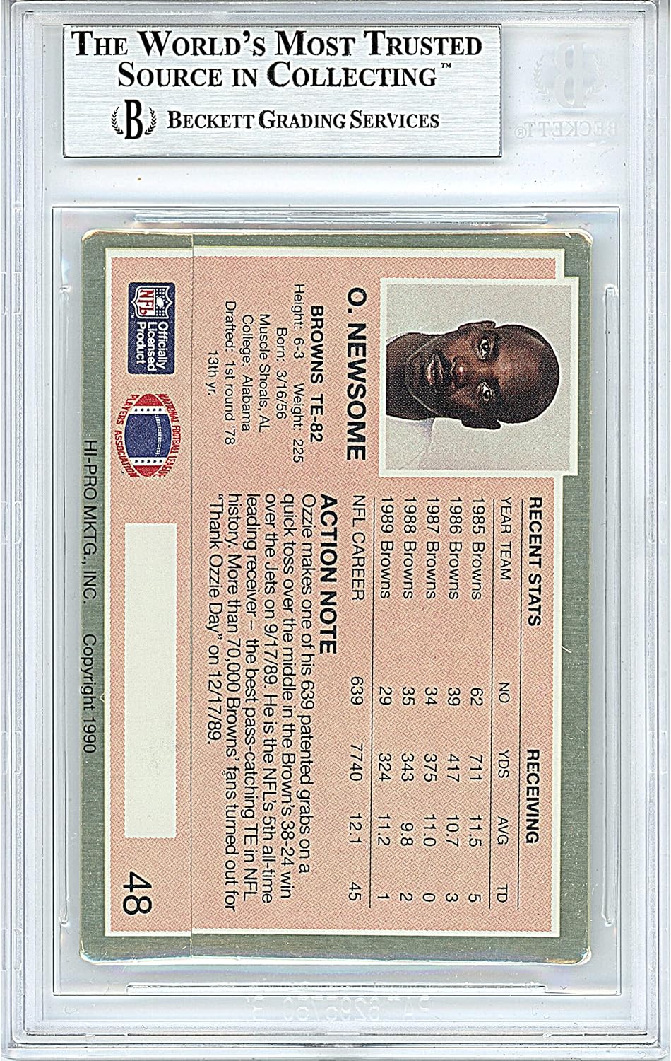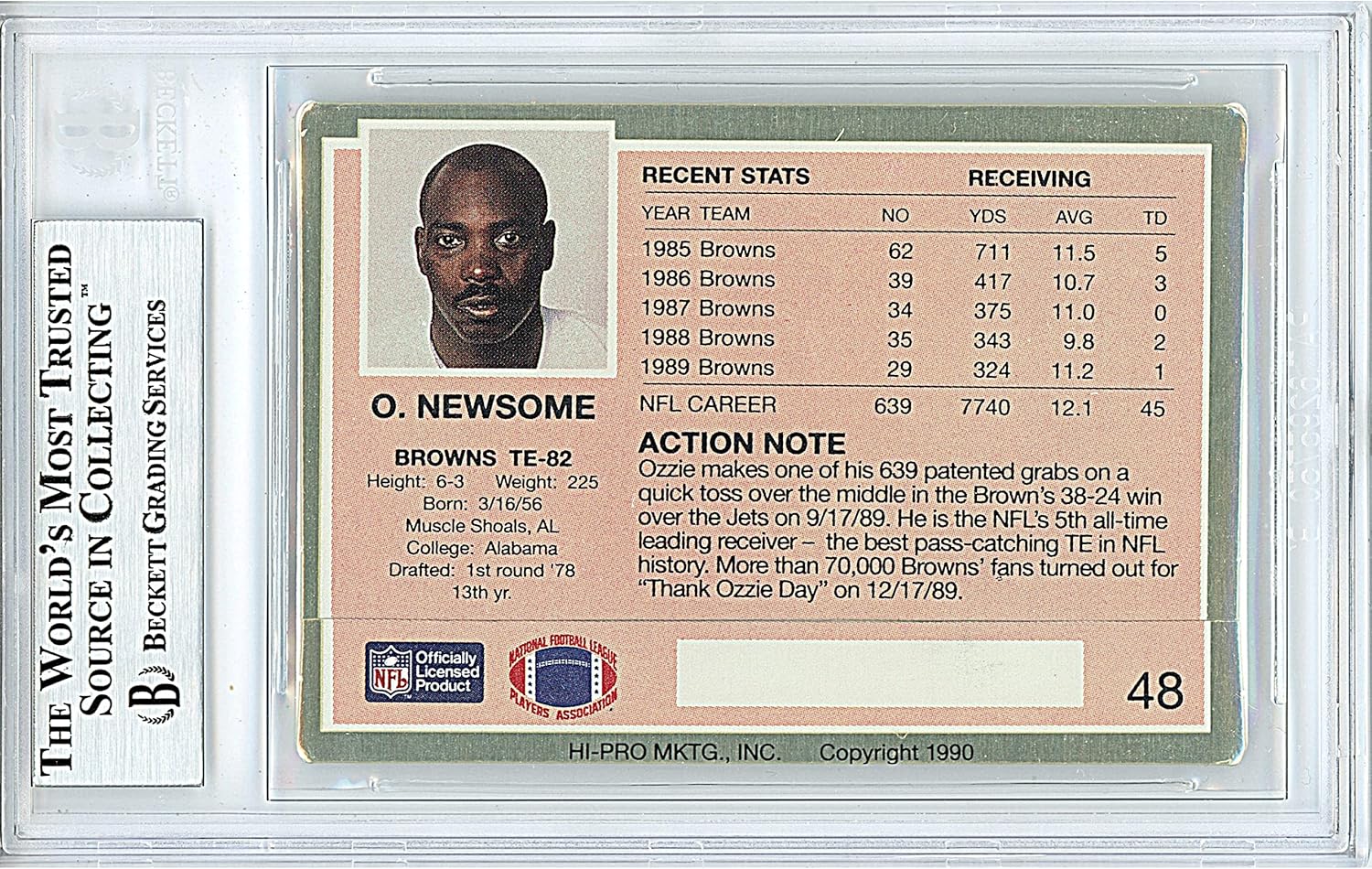 Ozzie Newsome Signed 1990 Action Packed Card #48, Beckett Authentic Autograph Slab, Cleveland Browns Autographed Football Memorabilia
