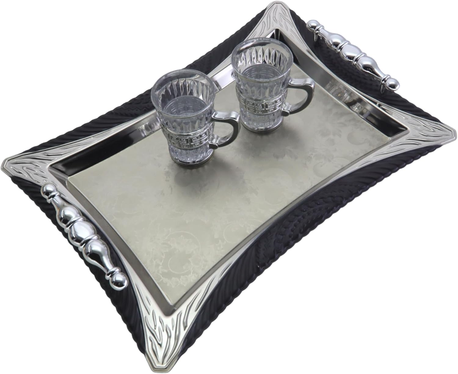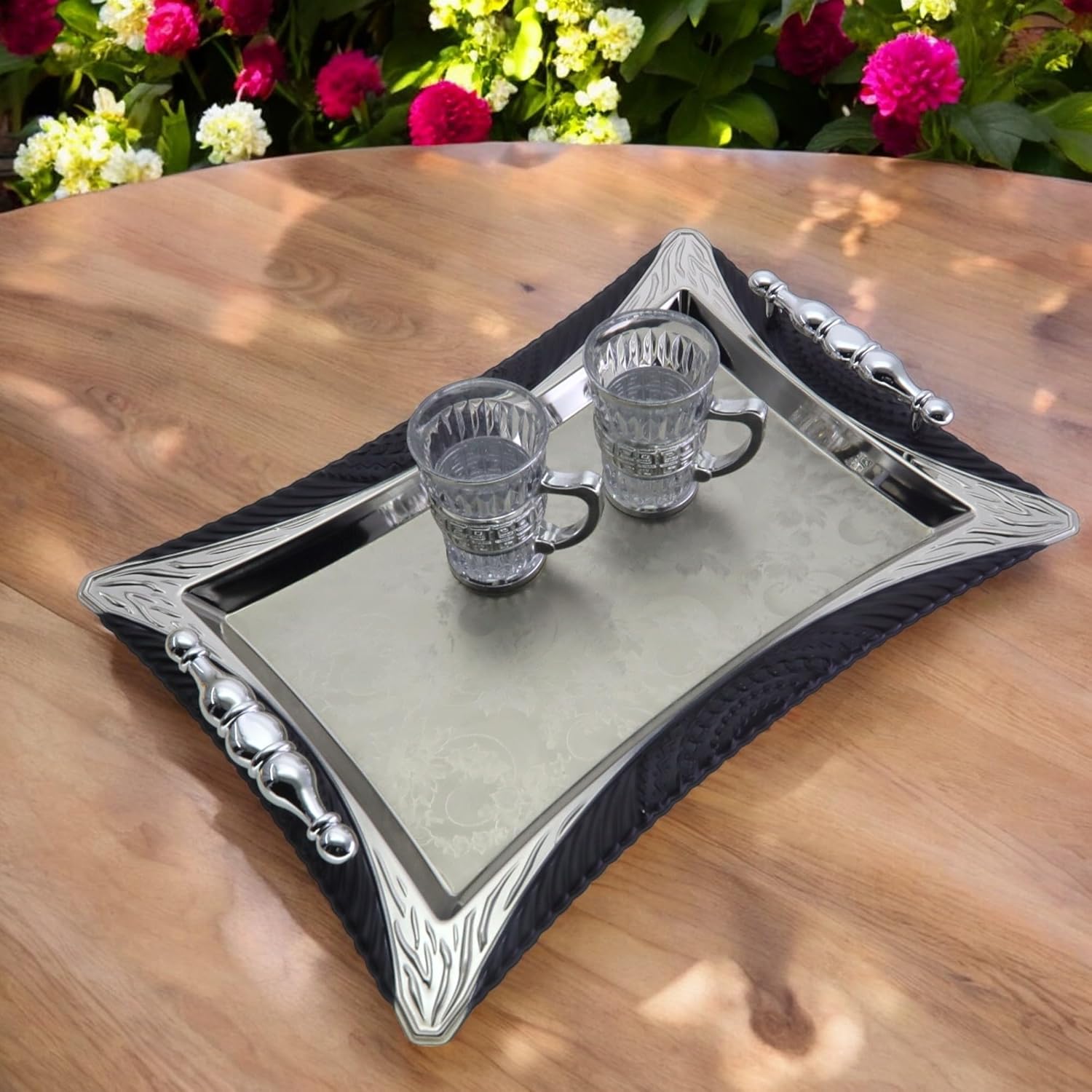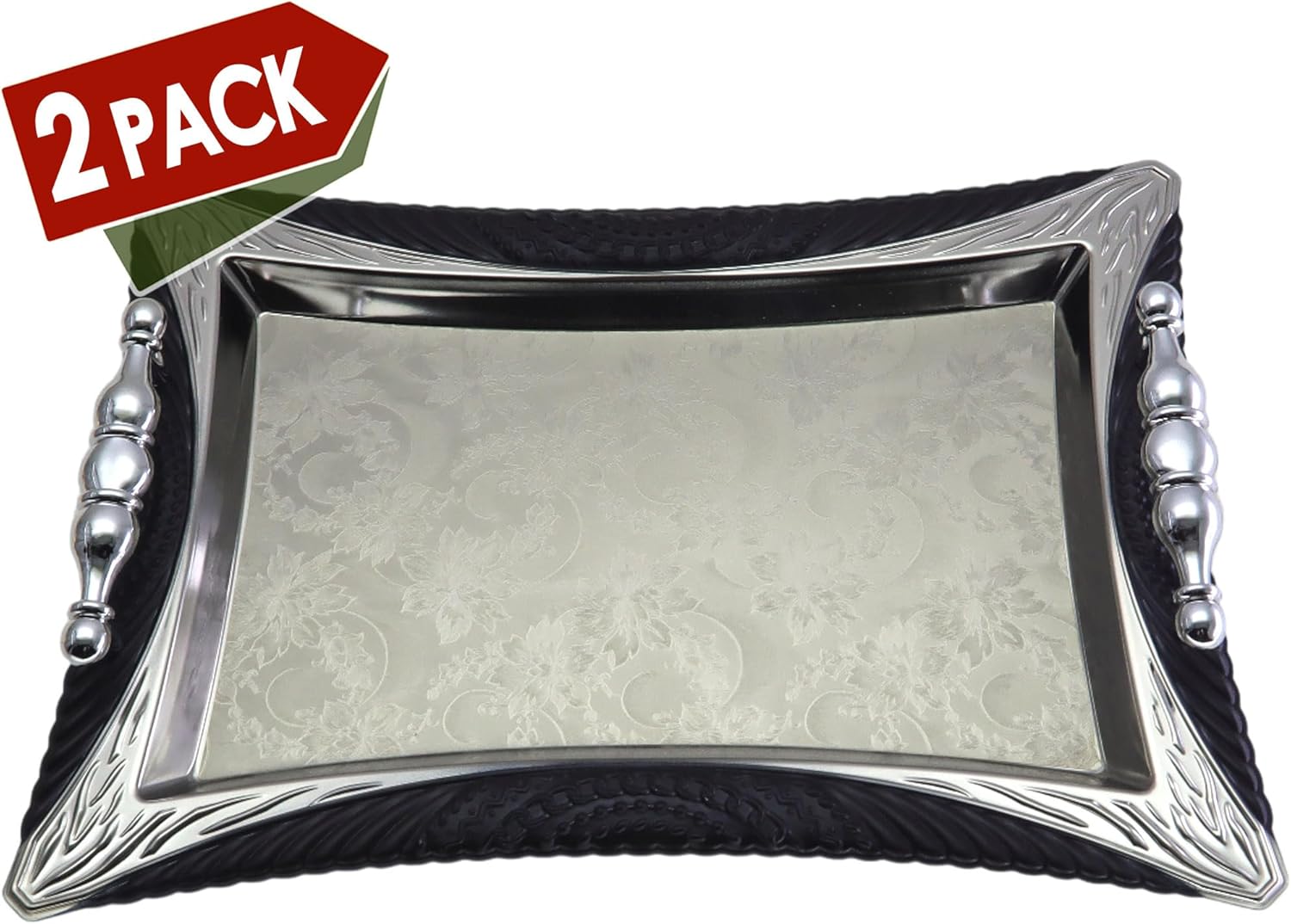 Pack of 2 elegant serving trays, outside dimension: 36 cm x 26 cm (or 14.2 inch x 10.2 inch), inside dimension: 26 cm x 15 cm (or 10.2 Inch x 5.9 Inch). (Tray size only; handle size is NOT included.)