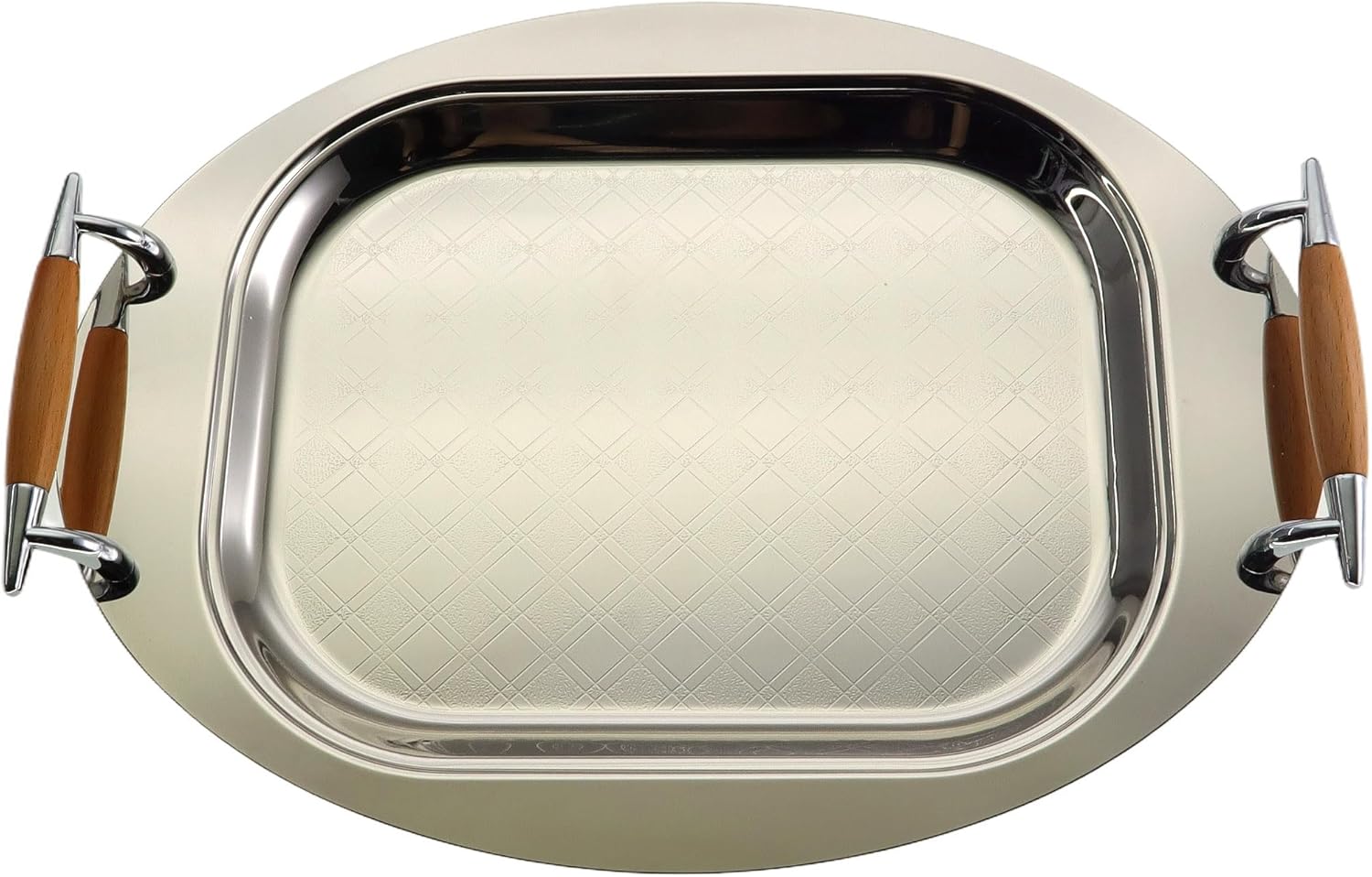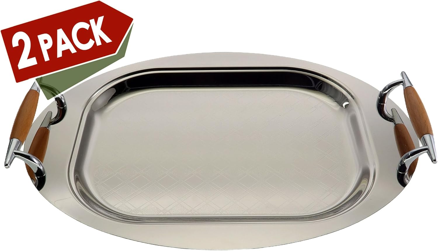 Pack of 2 elegant serving trays, outside dimension: 14.6 inch x 10.7 inch x 0.6 Inch, inside dimension: 9.3 Inch x 6.9 Inch (Tray size only, handle size NOT included).