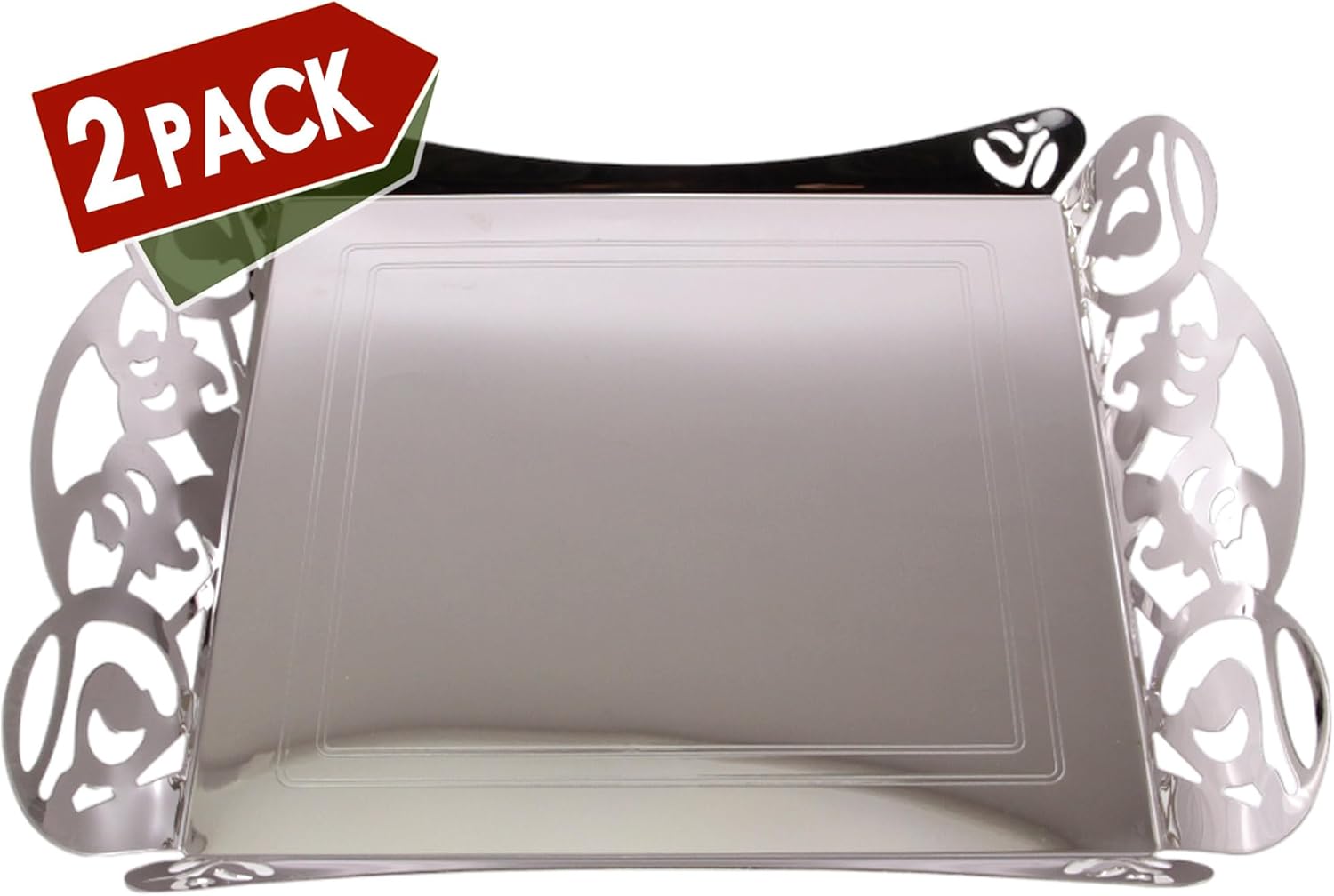 Pack of 2 elegant serving trays, outside dimension: 39.5 cm x 33.5 cm (or 15.6 inch x 13.2 inch), inside dimension: 28 cm x 22 cm (or 11 Inch x 8.7 Inch).