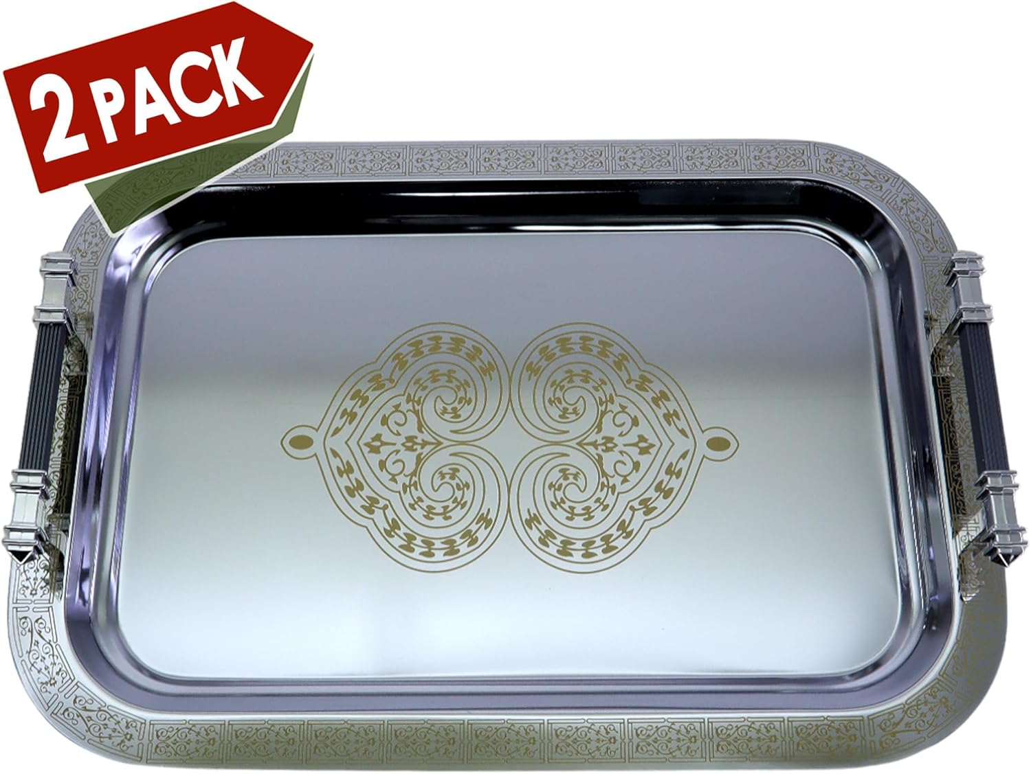 Pack of 2 elegant serving trays, outside dimension: 41 cm x 39.2 cm x 1.8 cm (or 16.1 inch x 15.4 inch x 0.7 Inch). (Tray size only; handle size is NOT included.)