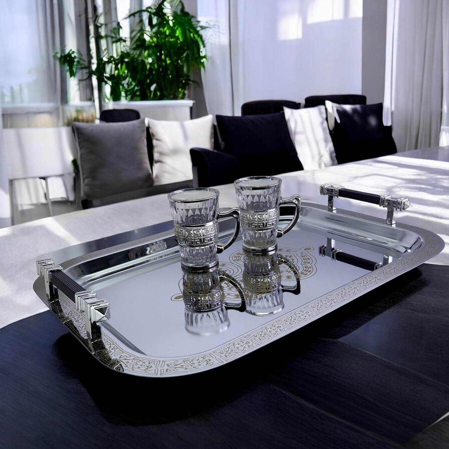 An effortlessly charming decorative piece at an affordable price. Featuring a chrome-plated, high-quality finish with a mirrored reflection, it’s perfect for the holidays or everyday use. This multi-purpose serving tray is ideal for buffet and catering services.