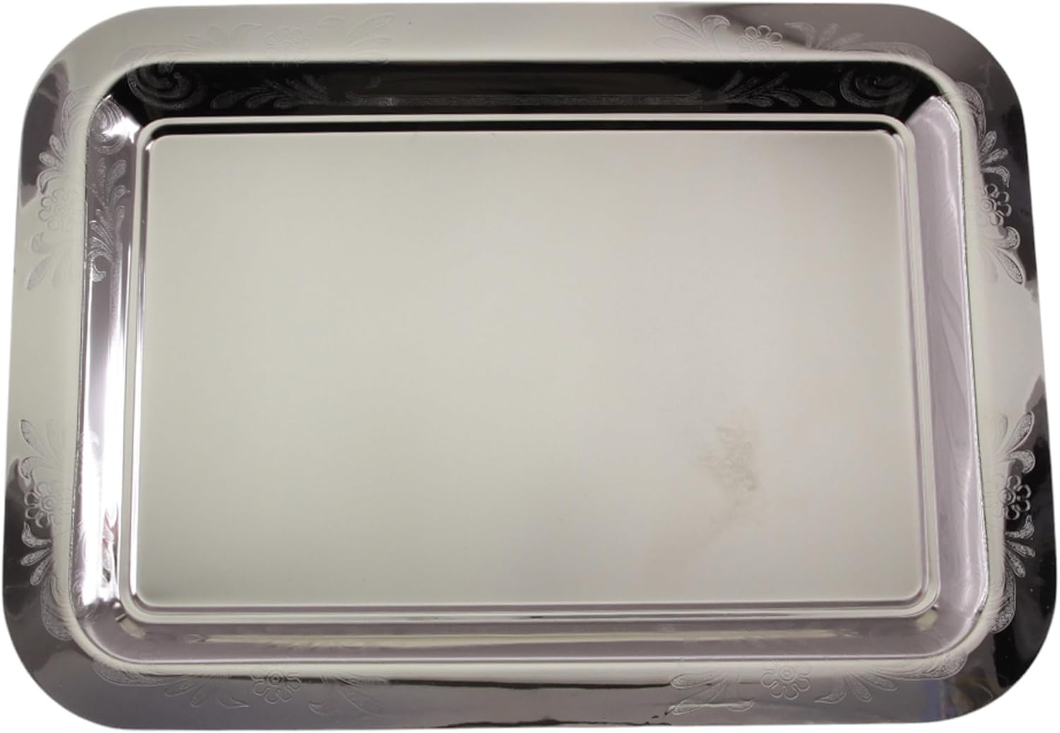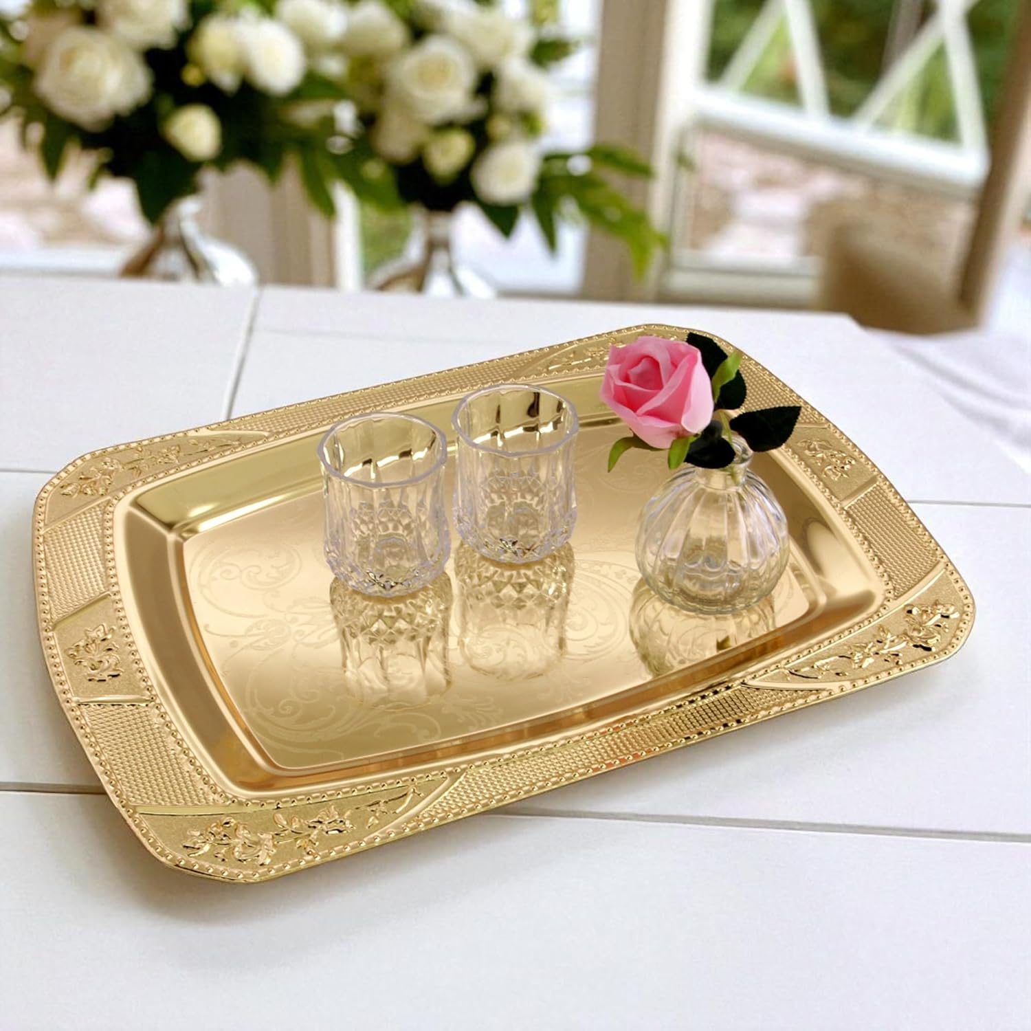 Pack of 2 elegant serving trays in Different Pattern, outside dimension: 43.4 cm x 31.5 cm (or 17.1 inch x 12.4 inch), inside dimension: 29.4 cm x 20 cm (or 11.6 Inch x 7.9 Inch). (Tray size only; handle size is NOT included.)