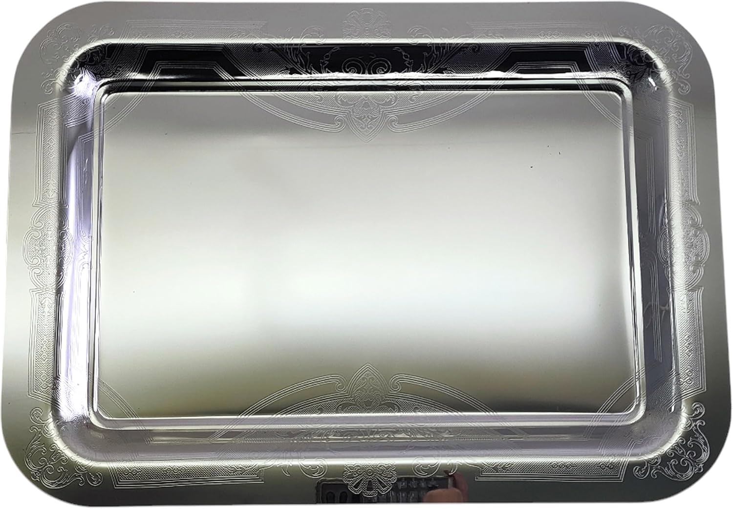 (Pack of 2) 17.1 inch x 12.4 inch Oblong Chrome Plated Serving Tray Stylish in Different Pattern Design Floral Engraved Edge Decorative Party Wedding Dessert Platter Plate NC-033