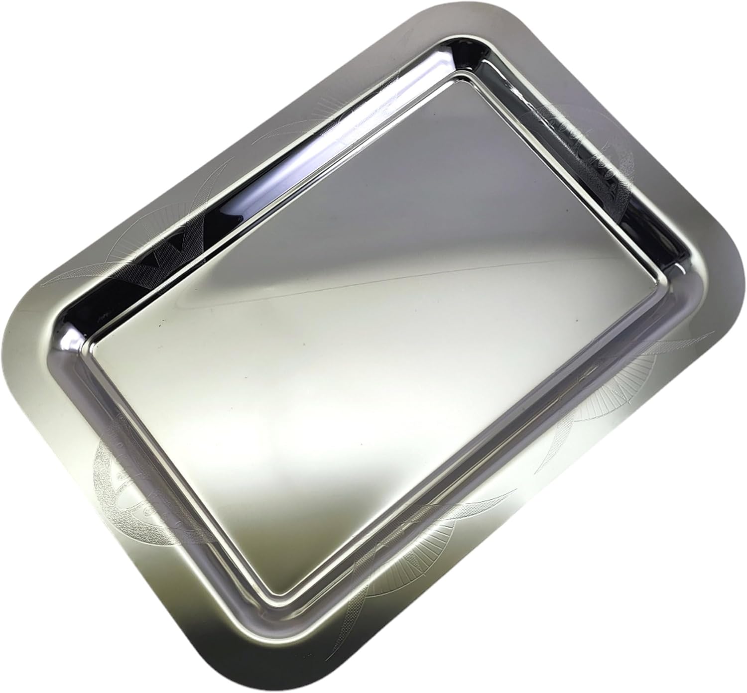 (Pack of 2) 17.1 inch x 12.4 inch Oblong Chrome Plated Serving Tray Stylish in Different Pattern Design Floral Engraved Edge Decorative Party Wedding Dessert Platter Plate NC-033