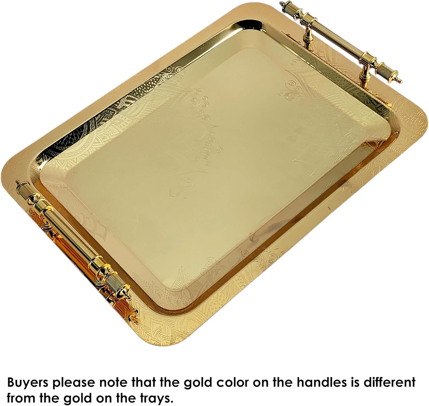 Pack of 2 elegant serving trays, outside dimension: 43.5 cm x 31.8 cm (or 17.1 inch x 12.5 inch), inside dimension: 31.5 cm x 21.5 cm (or 12.4 Inch x 8.5 Inch). (Tray size only; handle size is NOT included.)