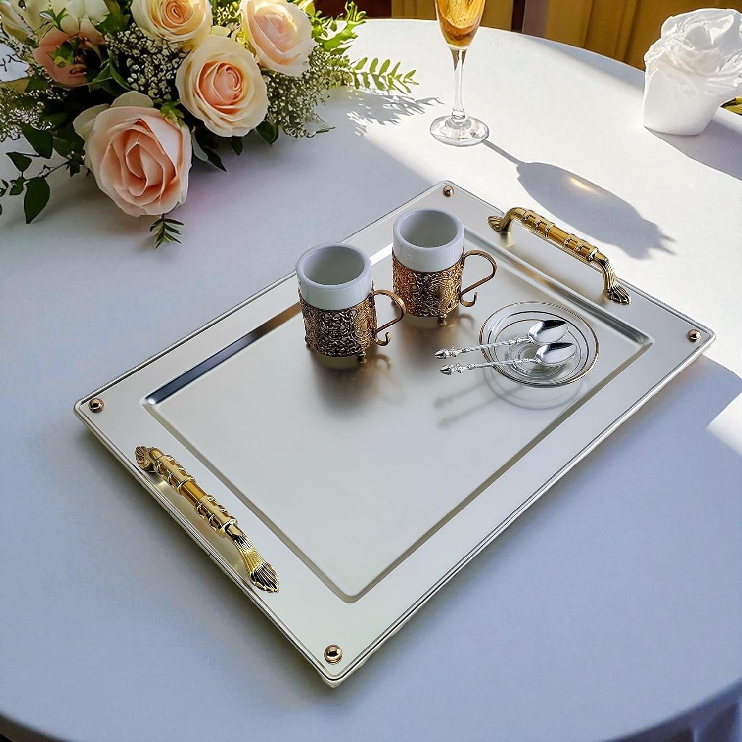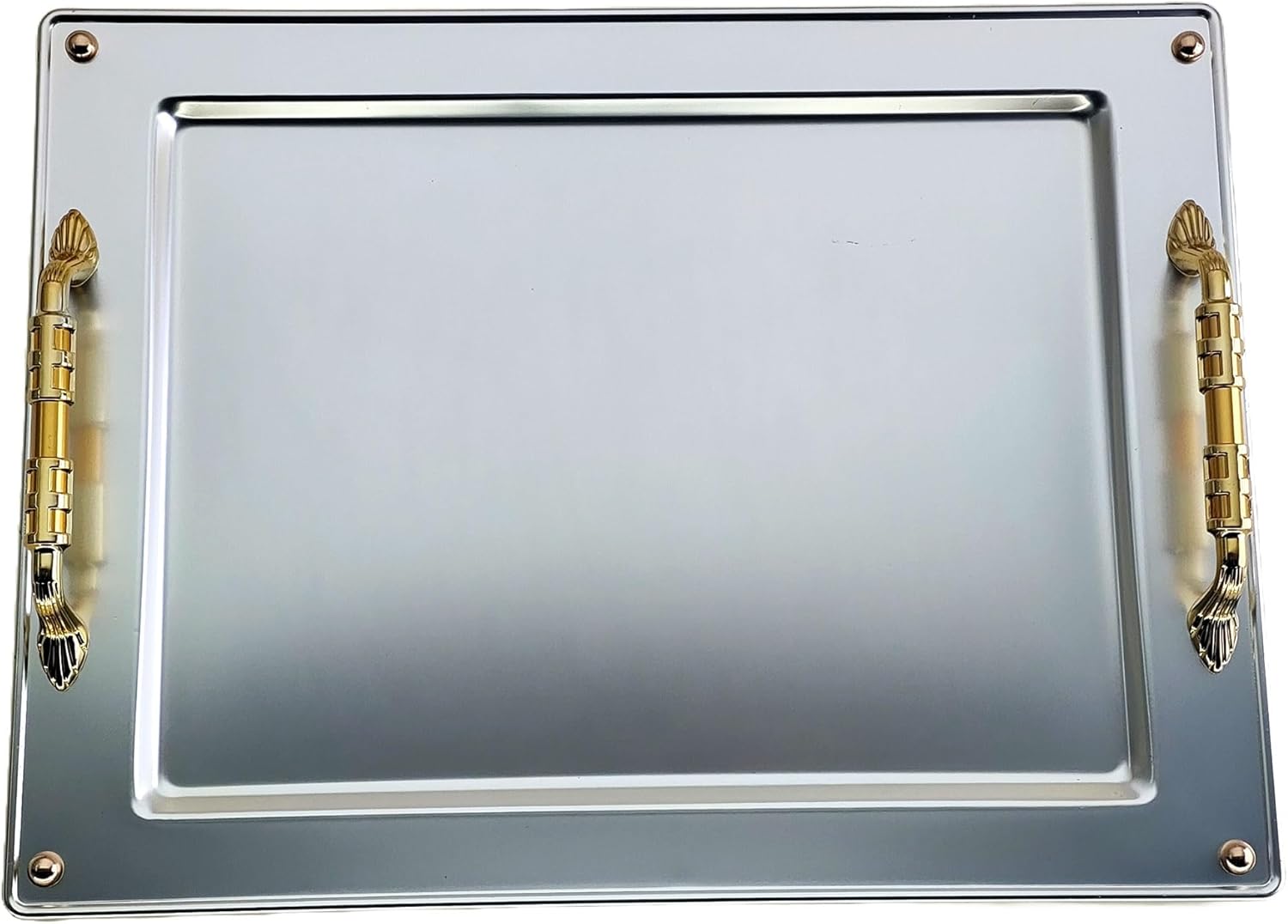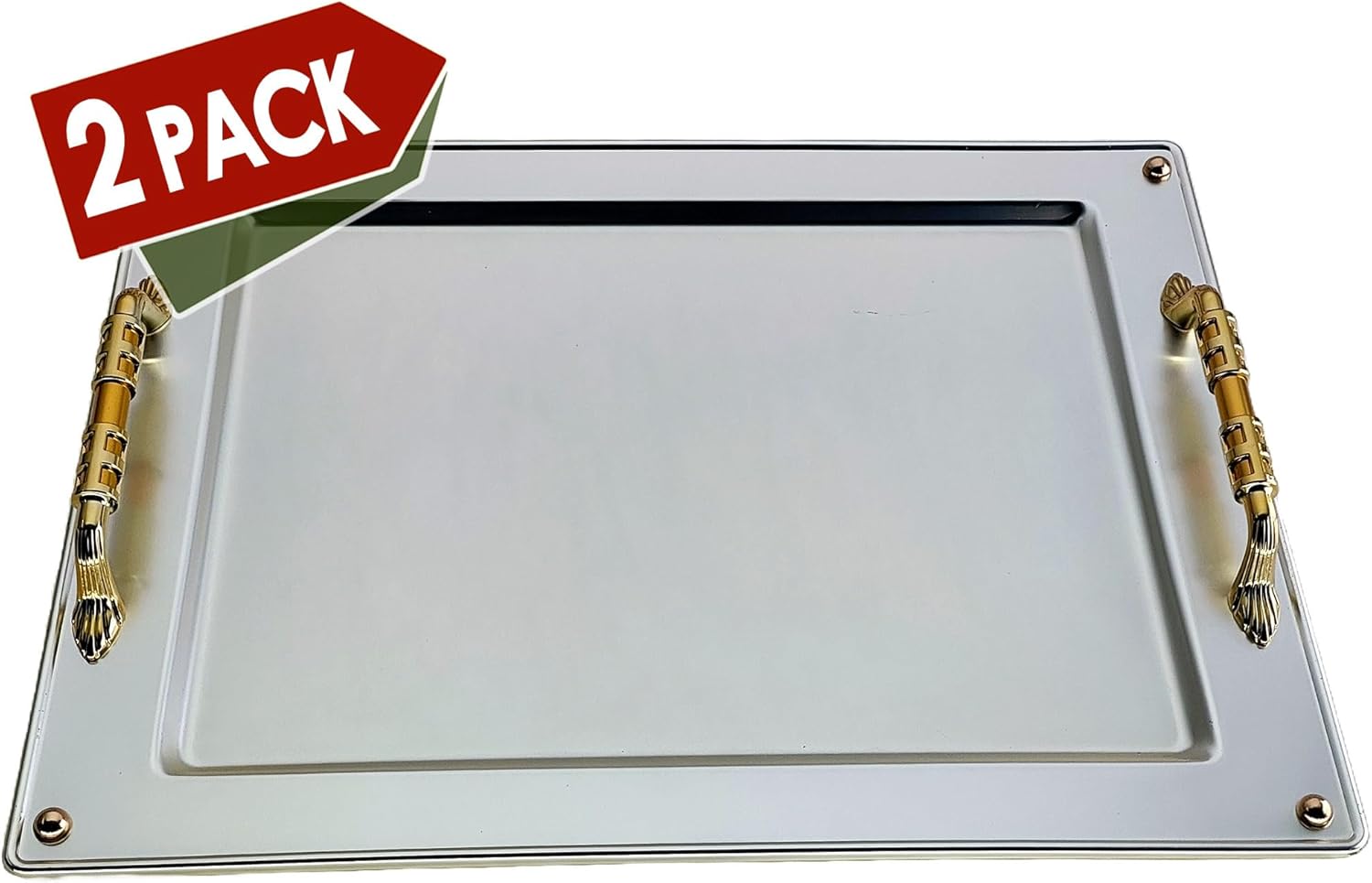 Pack of 2 elegant serving trays, outside dimension: 44 cm x 32.5 cm (or 17.3 inch x 12.8 inch), inside dimension: 34 cm x 24 cm (or 13.4 Inch x 9.4 Inch). (Tray size only; handle size is NOT included.)