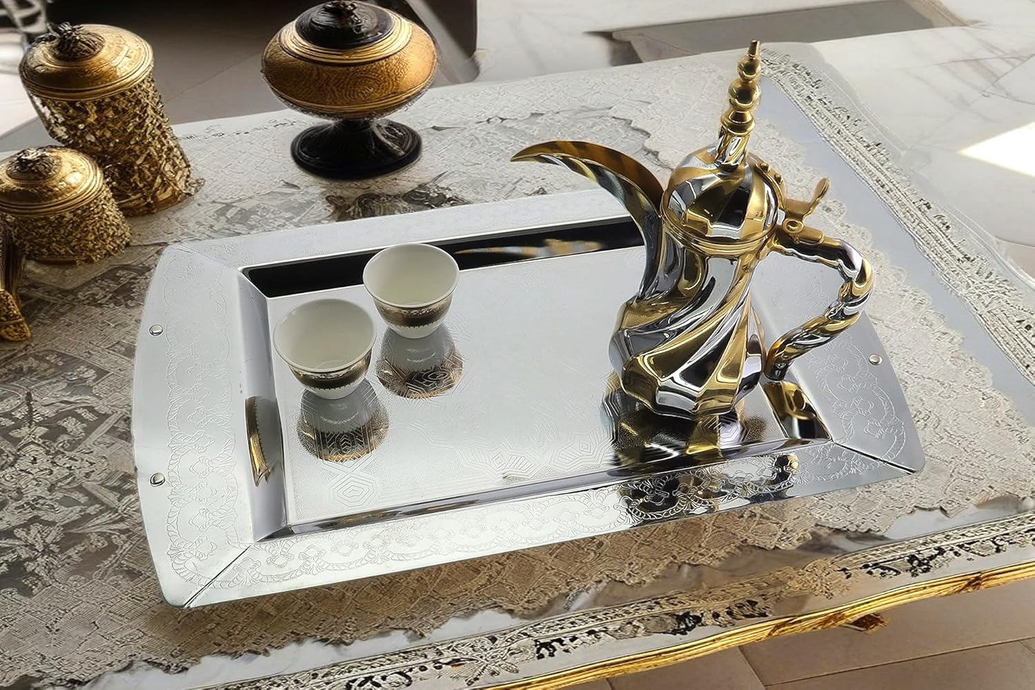 Pack of 2 elegant serving trays, outside dimension: 17.5 inch x 10.8 inch x 0.9 Inch.