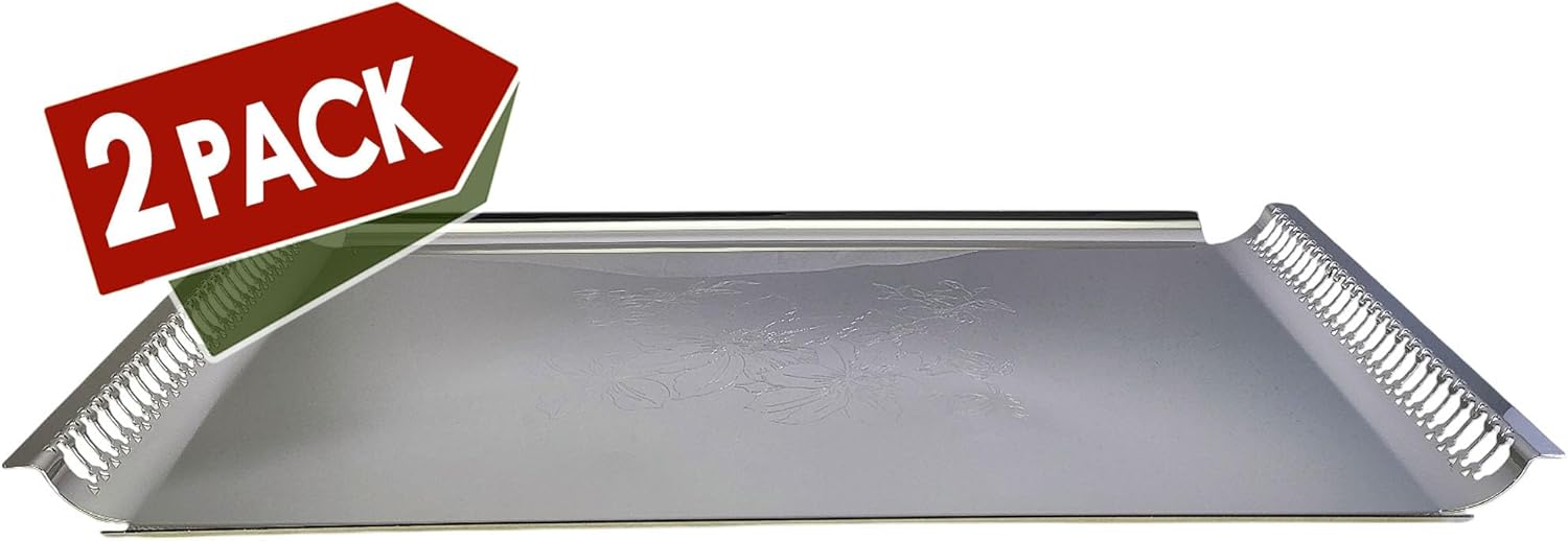 Pack of 2 elegant serving trays, outside dimension: 48.1 cm x 30.3 cm (or 18.9 inch x 11.9 inch), inside dimension: 44 cm x 27 cm (or 17.3 Inch x 10.6 Inch).