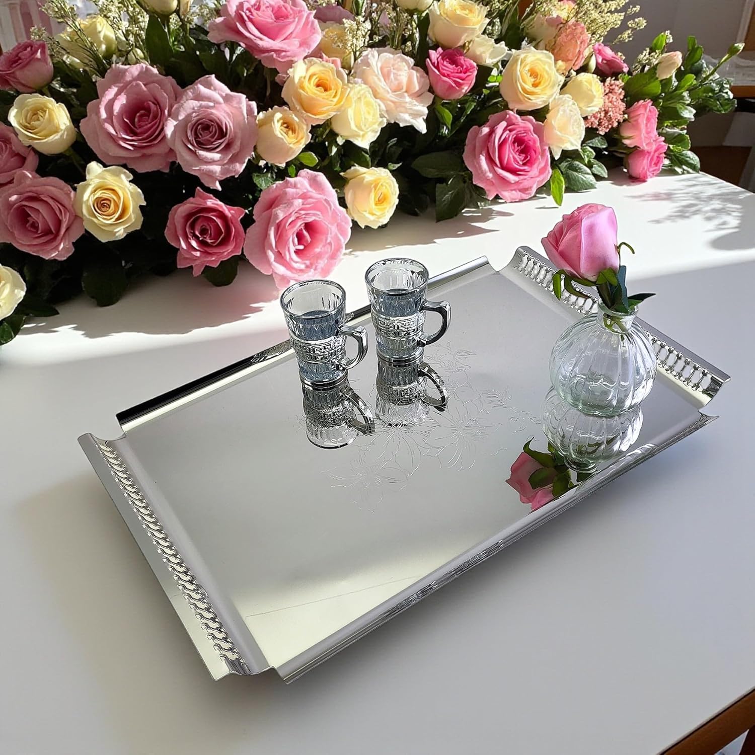 Pack of 2 elegant serving trays, outside dimension: 48.1 cm x 30.3 cm (or 18.9 inch x 11.9 inch), inside dimension: 44 cm x 27 cm (or 17.3 Inch x 10.6 Inch).