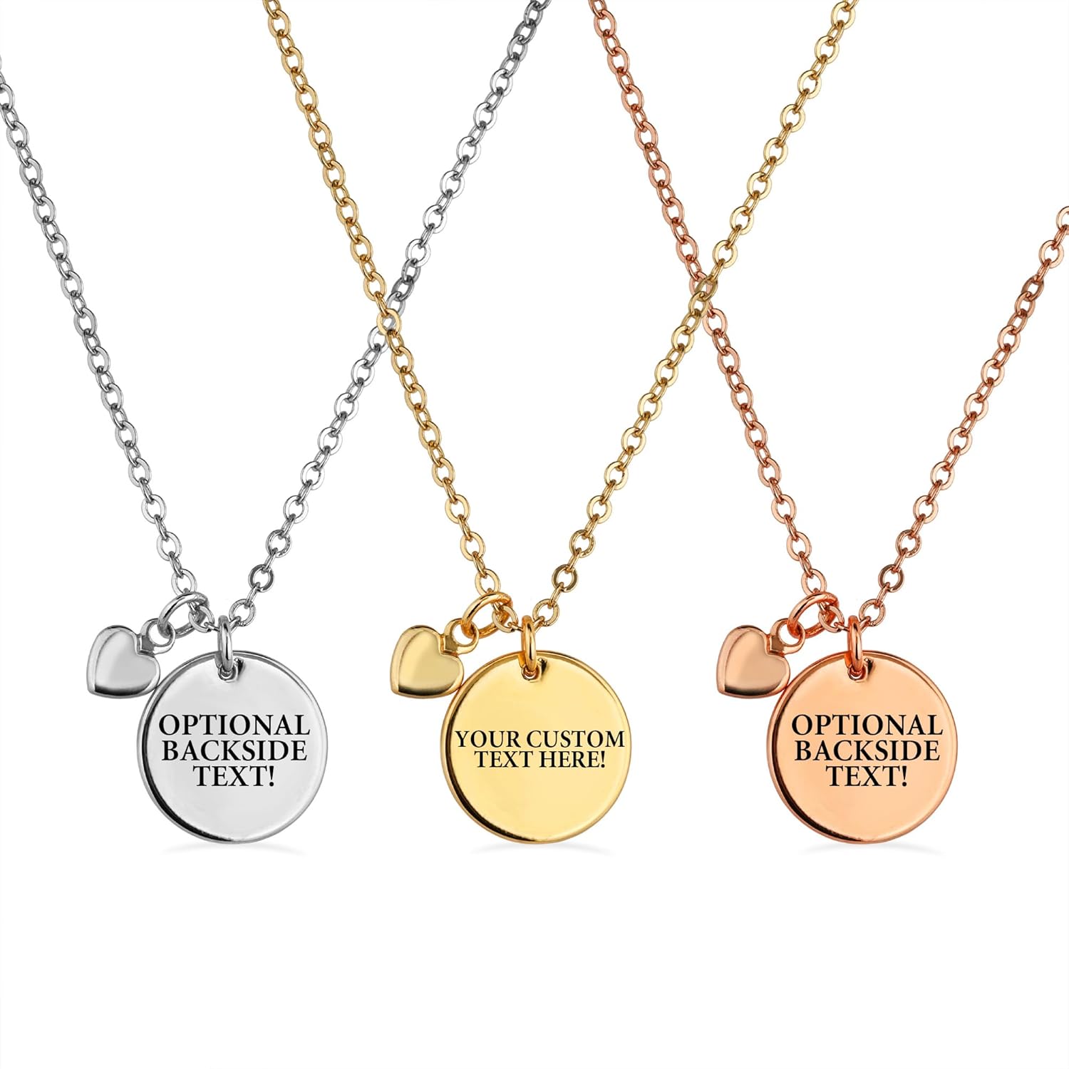 Celebrate special moments with the Personalized Disc Necklace, designed to add a meaningful and personalized touch to your jewelry collection. This Custom necklace features a customizable Text necklace that can be engraved with a name, important date, or special message, making it a truly one-of-a-kind gift. Whether you’re commemorating a birthday, celebrating Christmas, or showing appreciation to a loved one, this Engraved necklace will serve as a heartfelt reminder of your love and affection. Made from high-quality electroplated stainless steel, this custom gift is available in three stunning finishes: Gold, Rose Gold, and Silver. The electroplated surface ensures a durable, tarnish-resistant shine that stays radiant for years. The sleek, minimalist design makes it versatile enough to wear every day or as an elegant accessory for formal occasions. The custom gift also features a heart charm accent, adding a sweet, sentimental touch that makes it perfect for gifting to moms, bridesmaids, girlfriends, or any special woman in your life. This engraved necklace for women is the ideal personalized gift for women, offering a meaningful way to express love and affection on any occasion. Proudly designed in the USA, this custom engraved necklace is thoughtfully crafted and comes ready for gifting. It includes an adjustable chain, which allows you to customize the length for a comfortable and flattering fit. Whether for Christmas, Mother’s Day, a birthday, or any special occasion, this necklace will be treasured for years to come.