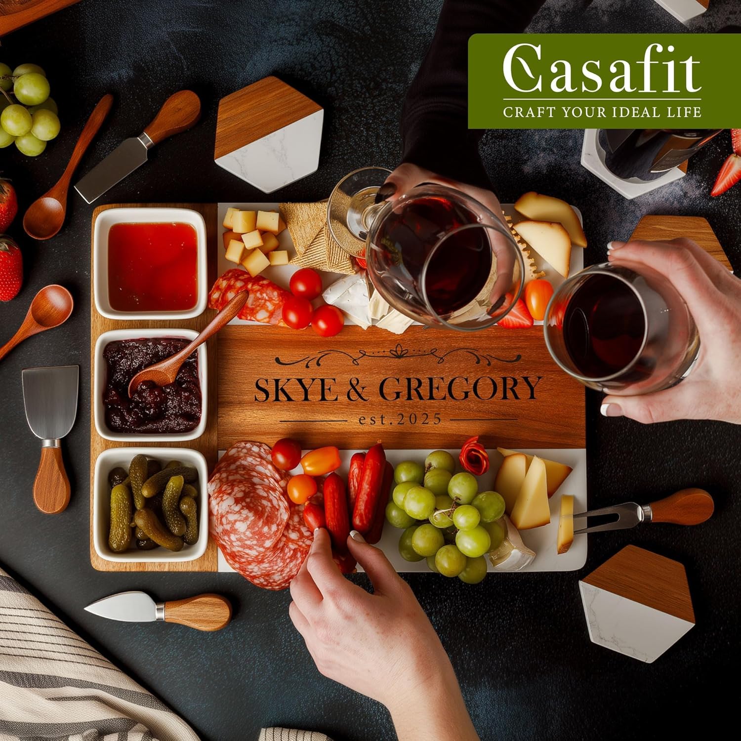 【Custom Touch for Every Occasion】 – Personalize your charcuterie board with names, dates, or a special message for weddings, anniversaries, housewarmings, and more