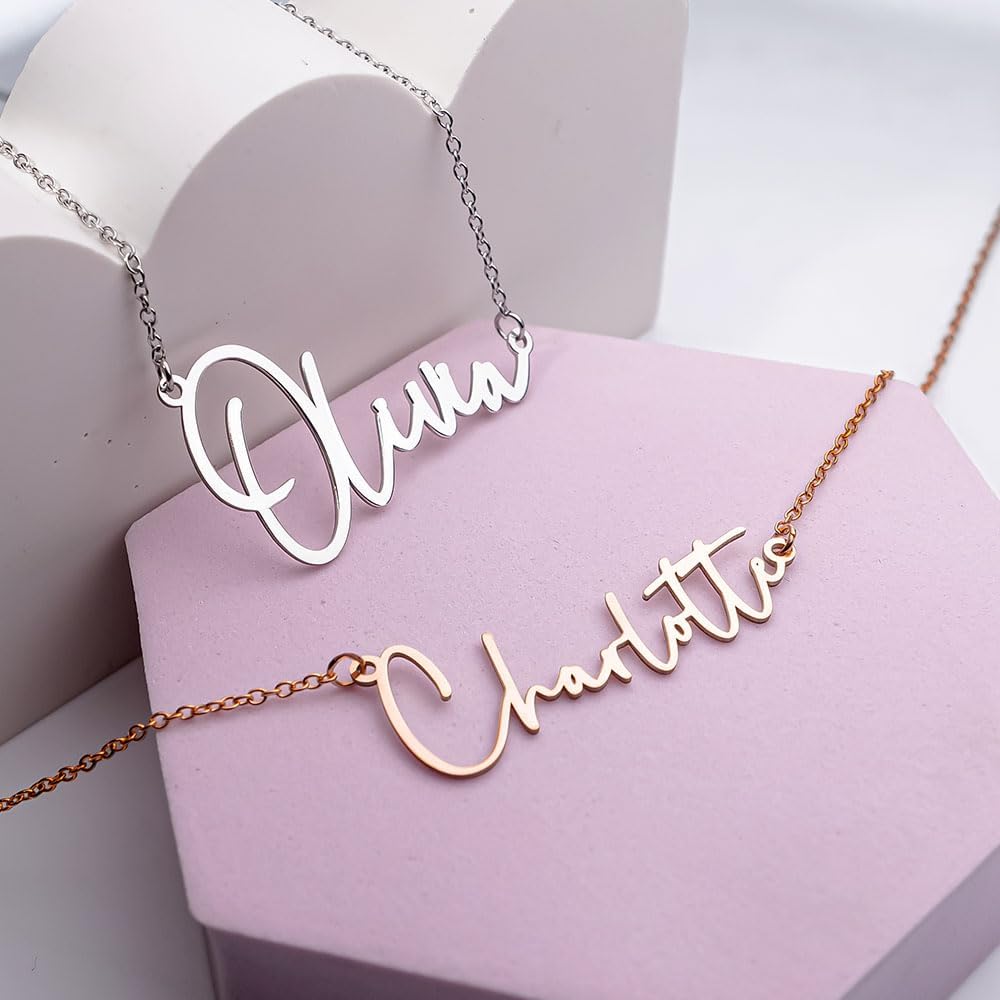 Two Models wearing the name necklaceTwo Models wearing the name necklace