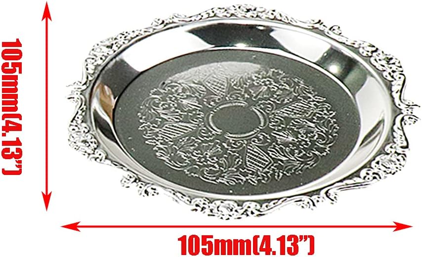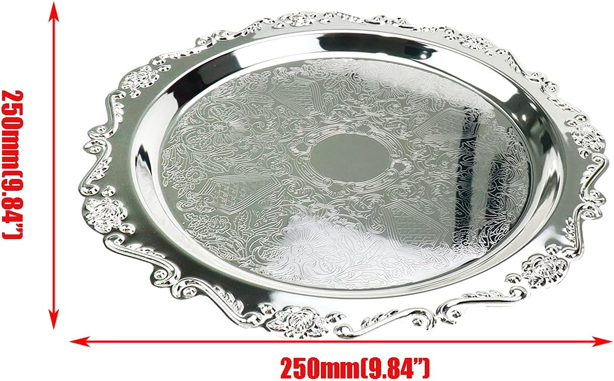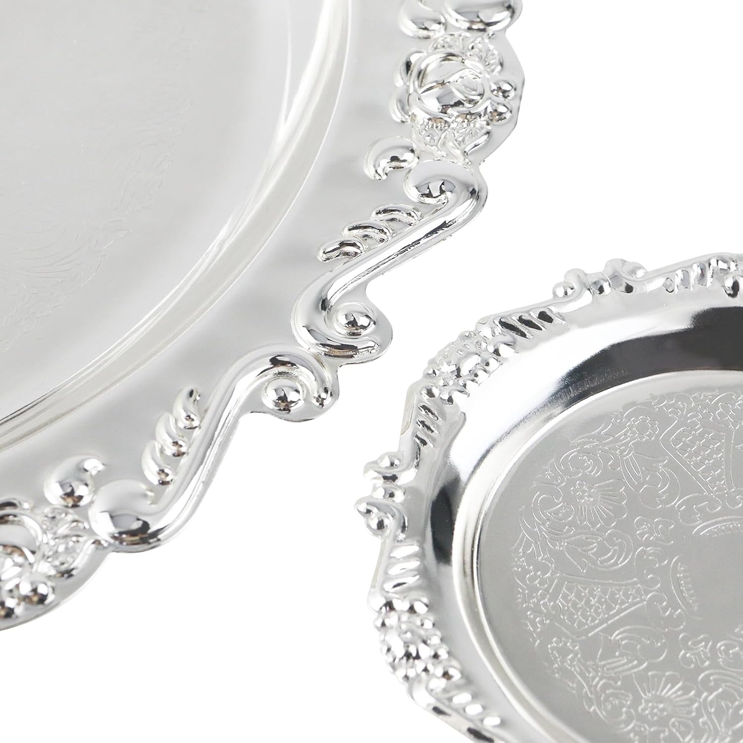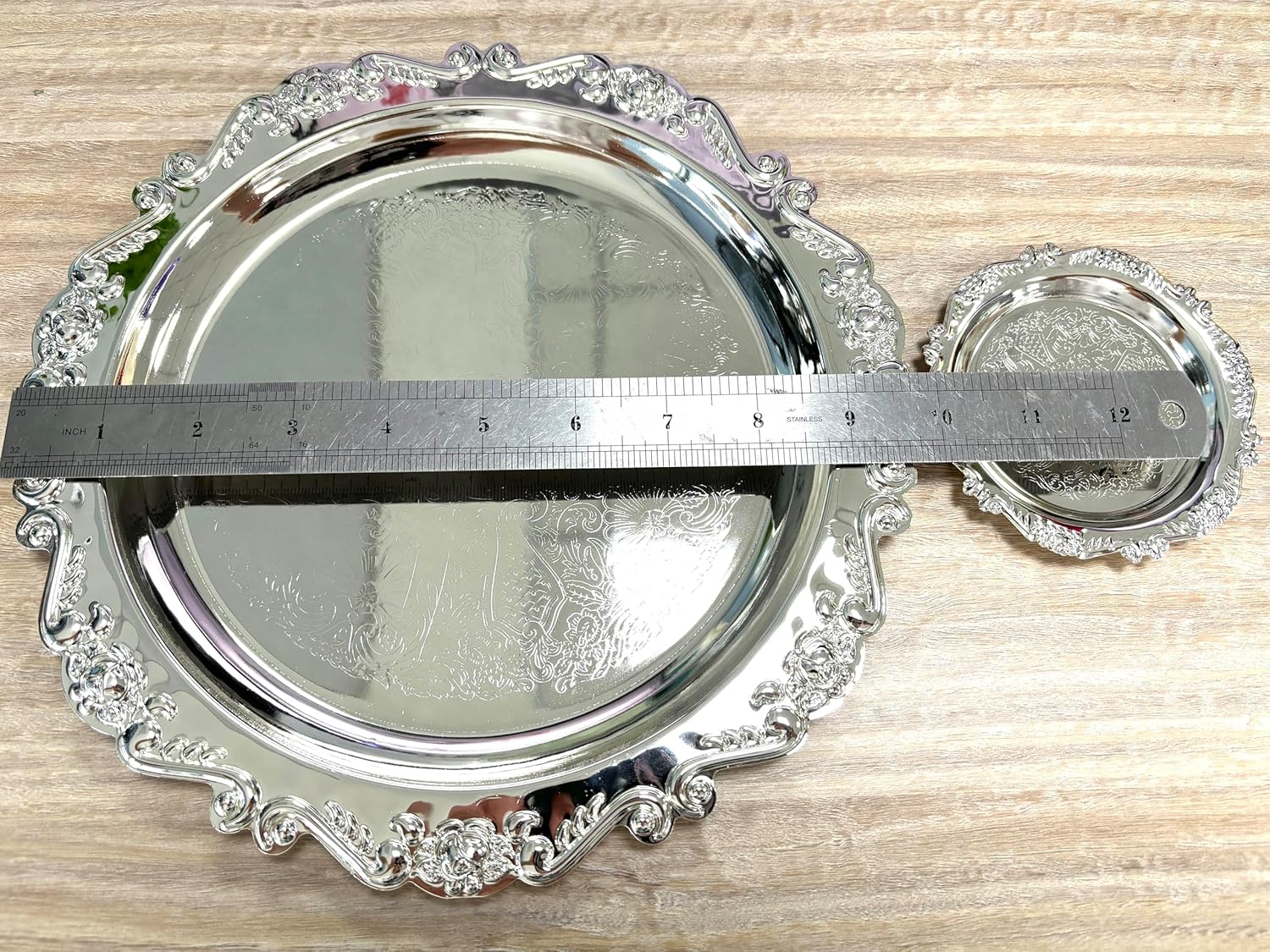 Quluxe Round Platter Serving Tray Metal Reusable Decorative Appetizer Platter Dessert Plate for Kitchen Party Centerpiece Display, 2 Pcs Silver (4 Inch+10 Inch)
