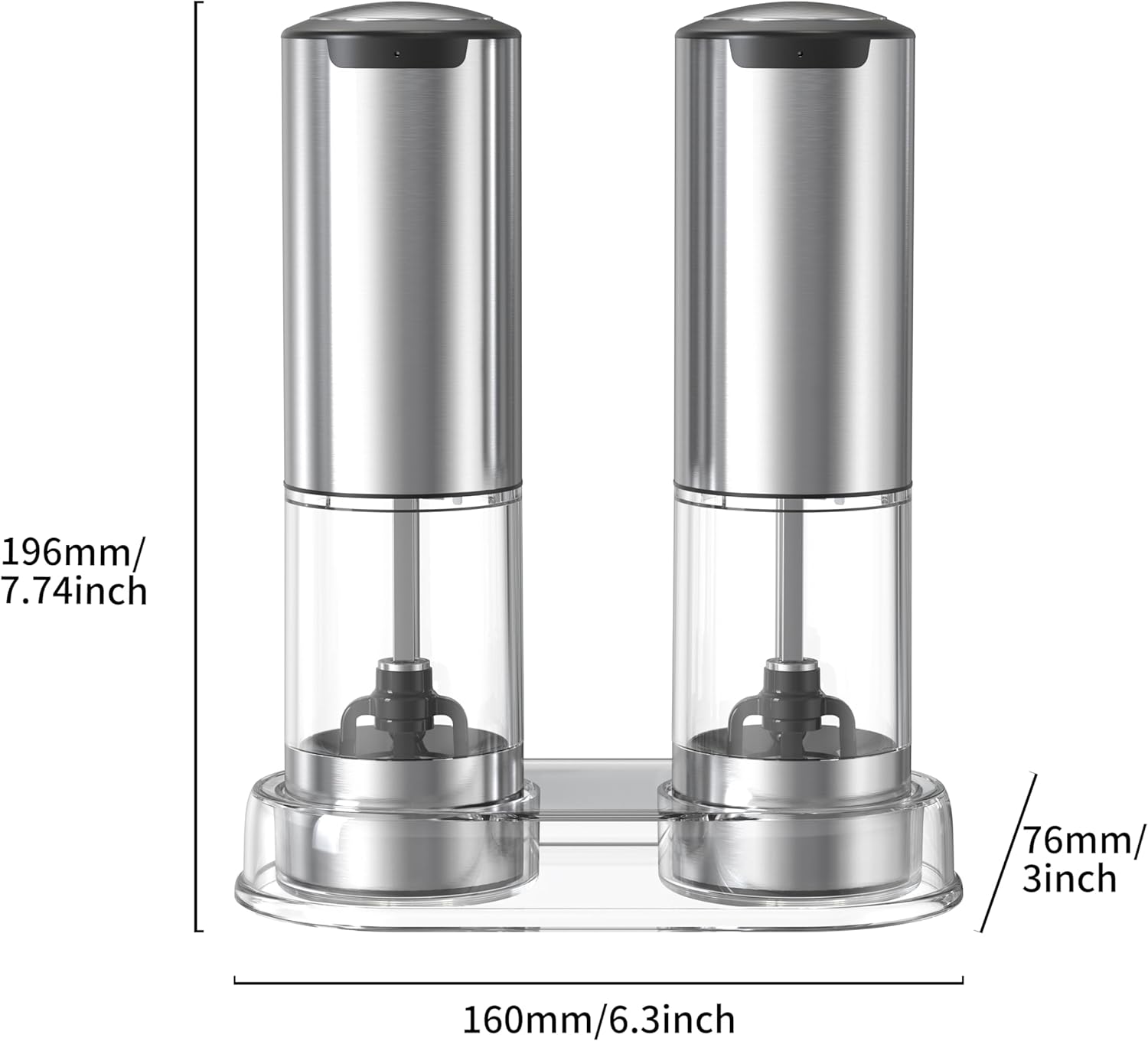 Upgrade your kitchen with our Stainless steel 304 Rechargeable Electric Salt and Pepper Grinder Set with Storage Base. Featuring Germany tech, this AUTO SALT AND PEPPER GRINDER SET offers one-hand operation and adjustable coarseness for perfect seasoning every time.