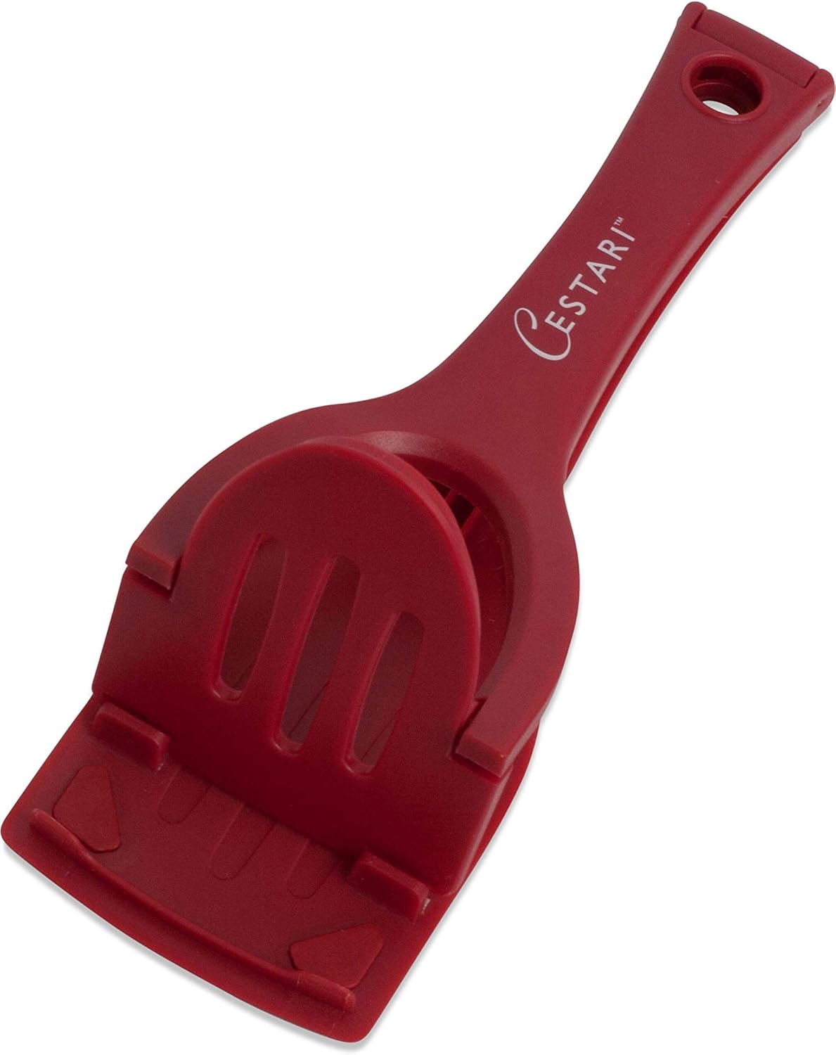 STABLE: Securely holds smartphones and tablet computers on the counter or work space without tipping so recipes display easily. When not in use, the cute spatula design allows it to blend in with your other kitchen items. It can also be folded and tucked away in a drawer until needed.ERGONOMIC DESIGN Easel back ensures recipes are held in place at an upright and easy-to-read angle which makes it easier for you to follow a recipe while cookingVERSATILE Compatible with most electronic devices, all popular tablets, e-readers, cell phones , including Apple iPad, iPad Air, iPad mini, iPhone, Amazon Fire, Kindle, Nook, Samsung, Nexus and other electronics . And if you still use traditional recipe cards, this cookbook stand will hold those too! This iPad holder will be one of the most used kitchen gadgets in your home.CONVENIENT Slim unique design for compact storage in drawers or cabinets ; unlike other holders it can also be hung for convenient access – just mount a hook on the wall or cabinet and place the stand on the hanger ; heavy duty plastic is dishwasher safe.