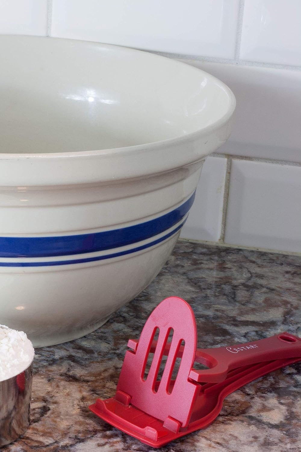 📱 STABLE: Securely holds smartphones and tablet computers on the counter or work space without tipping so recipes display easily. Silicone grips on the base help to prevent slipping. When not in use, the cute spatula design allows it to blend in with your other kitchen items. It can also be folded and tucked away in a drawer until needed.