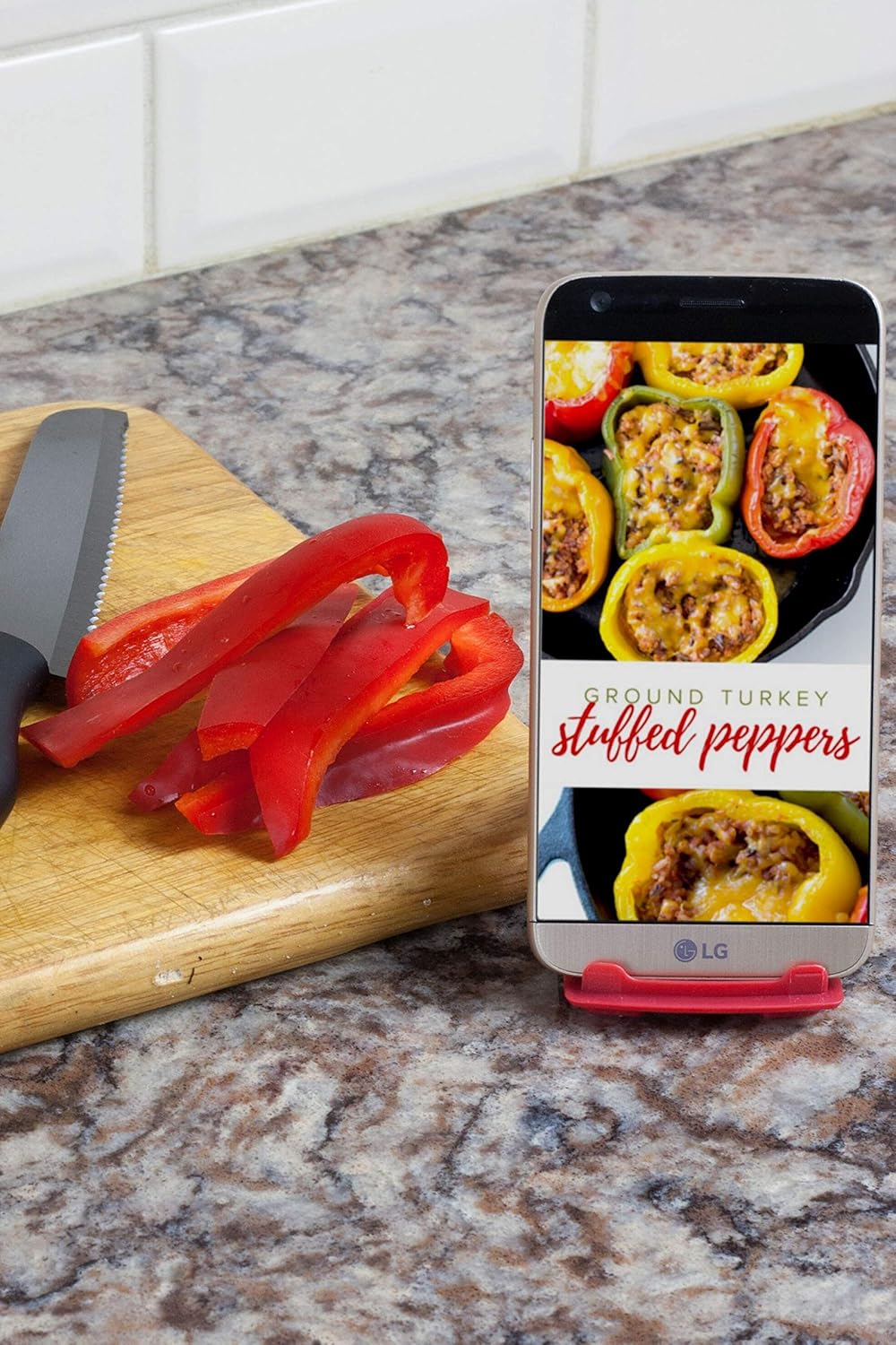 HOLDS YOUR PHONE OR TABLET EITHER VERTICALLY OR HORIZONTALLY, KEEPING YOUR RECIPES EASY TO READ