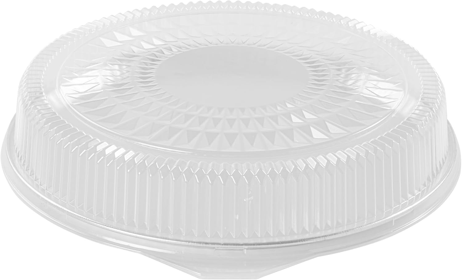 Elevate your food presentation with our Foil Lux Round Aluminum Catering Trays. Crafted from premium aluminum, these catering trays are sturdy and durable, making them a reliable option for serving food at events and gatherings of all kinds. Pair these serving trays with their compatible dome lids (SKU: RWM0198C-10) to protect your food and maintain its integrity, especially during transportation or storage. The versatile design of these serving platters can effortlessly accommodate hot and cold food temperatures, making them ideal for serving piping hot hors d’oeuvres or refreshing chilled salads. Featuring an intricately engraved pattern, these party trays instantly create an eye-catching presentation for your culinary delights. For a no-hassle cleanup, these food trays can be discarded after use and avoid the need for washing. Keeping ecologically-conscious concerns in mind, these disposable food trays are designed to be sustainable. These serving dishes measure 18 inches in diameter by 0.8 inches in height and offer generous space for showcasing or serving food. Sold in a 10 count box. Dome lids are available and sold separately.