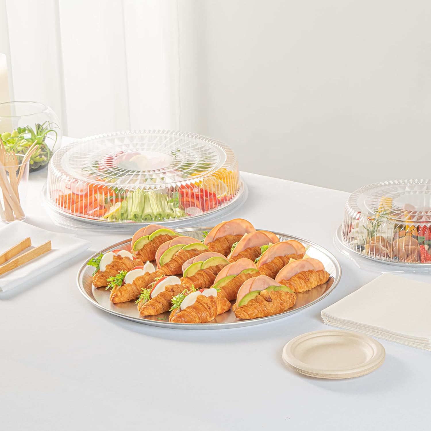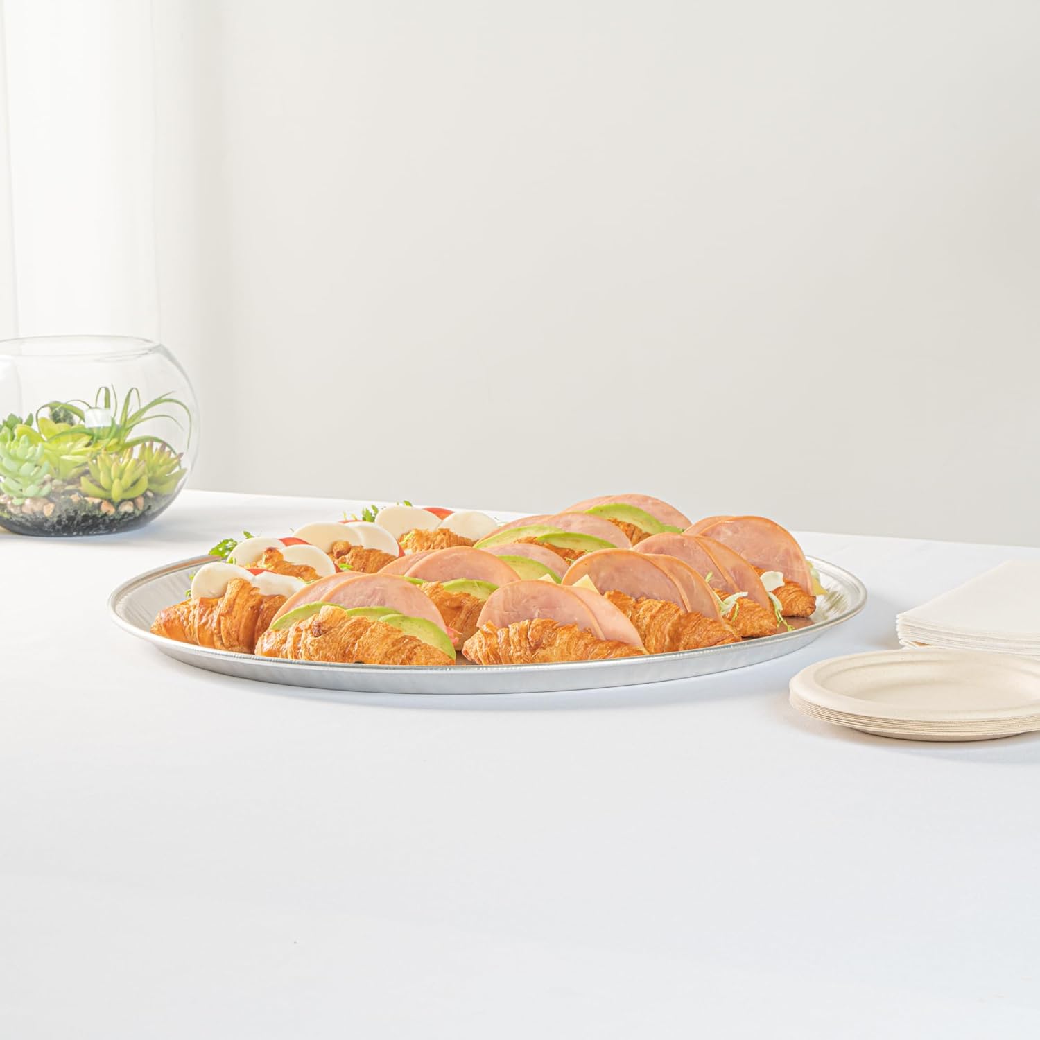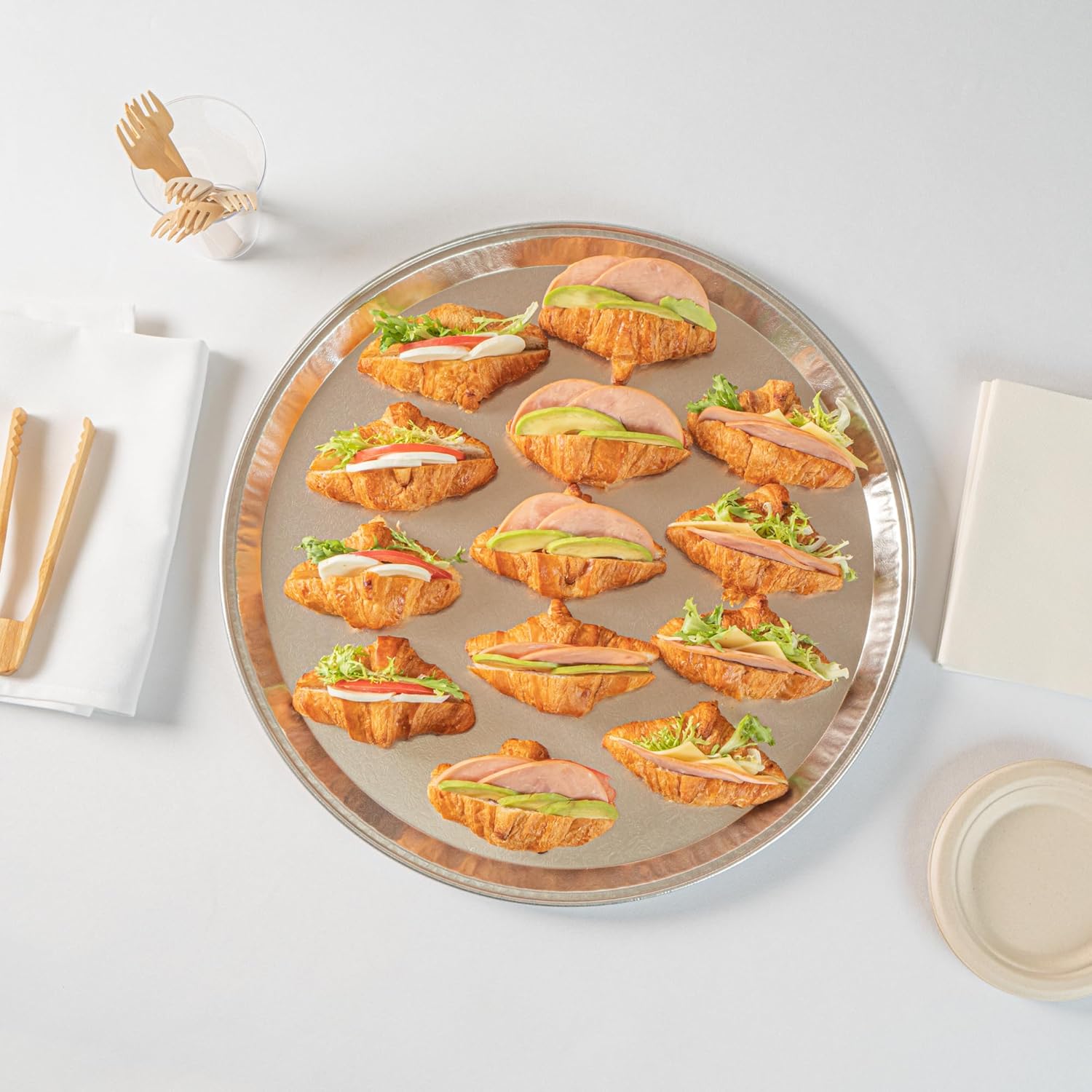INCLUDES 10 CATERING TRAYS: These catering trays measure 18 inches in diameter by 0.8 inches in height and are ideal for serving delicacies. You will get 10 aluminum trays per order.