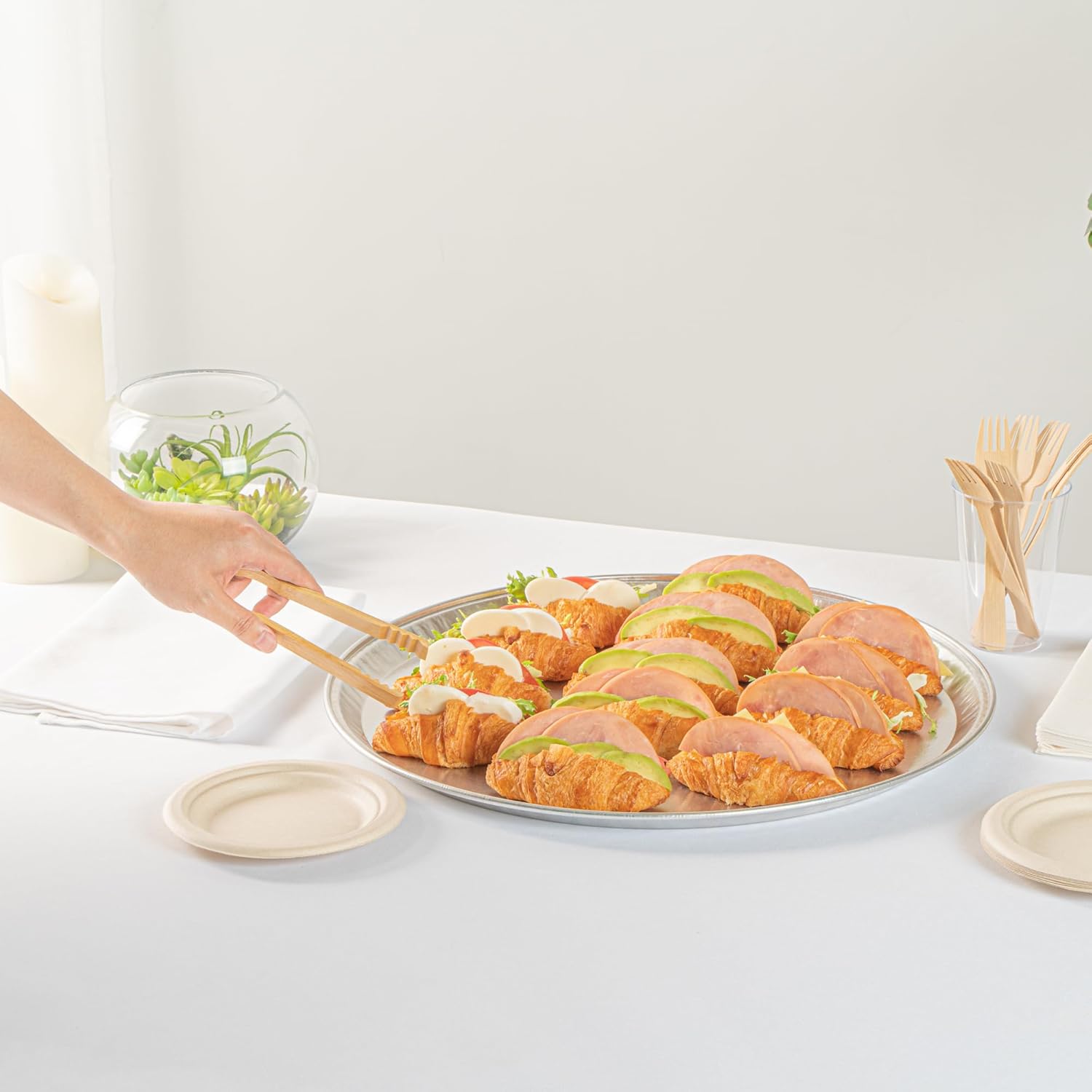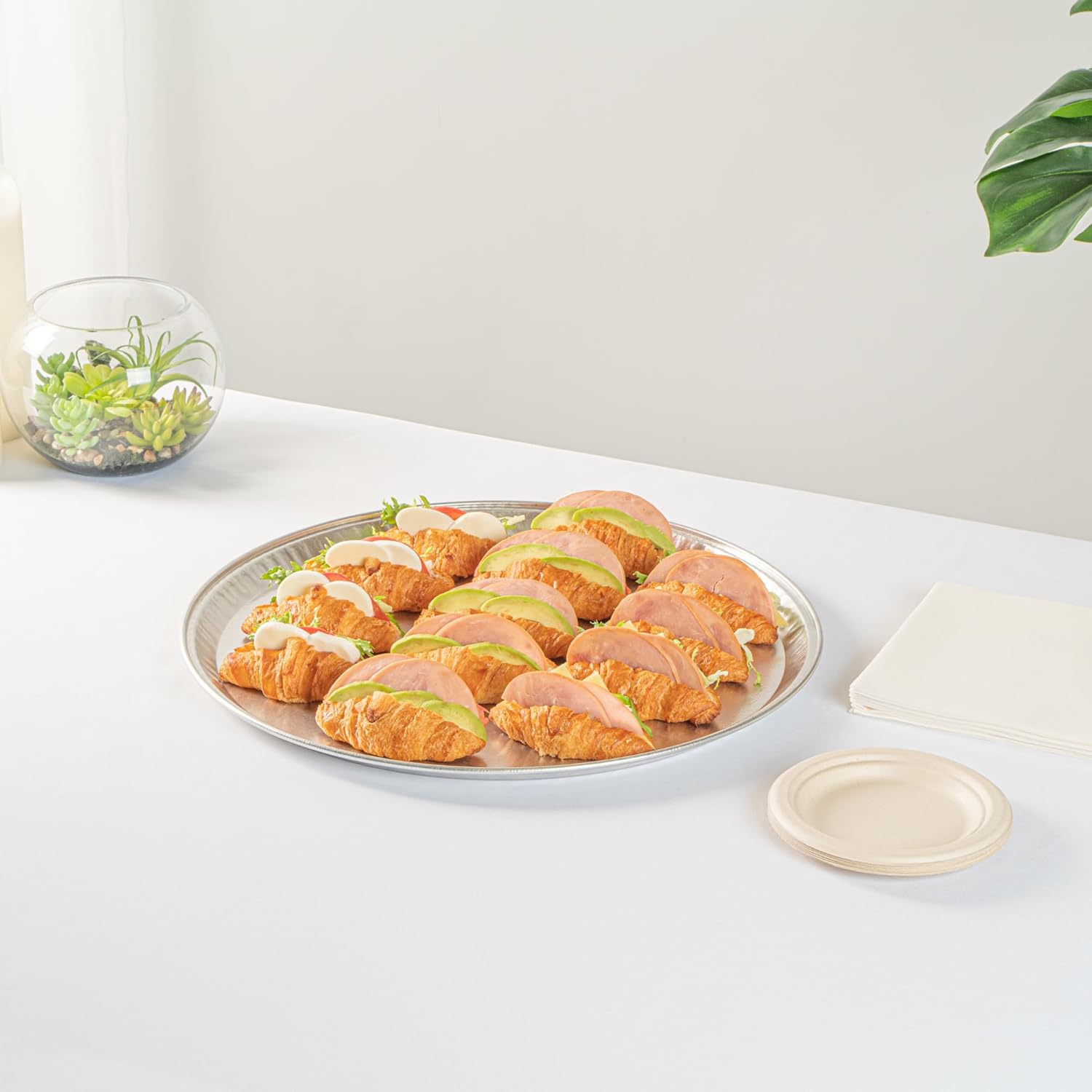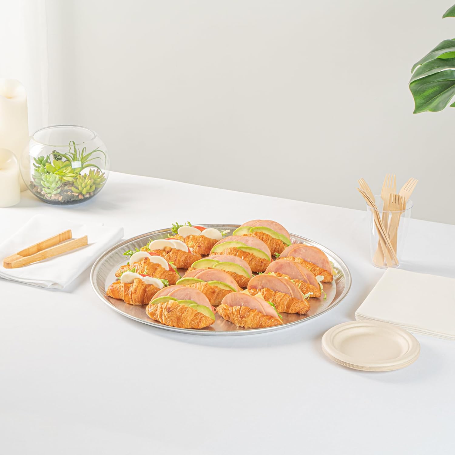 INCLUDES 10 CATERING TRAYS: These catering trays measure 18 inches in diameter by 0.8 inches in height and are ideal for serving delicacies. You will get 10 aluminum trays per order.