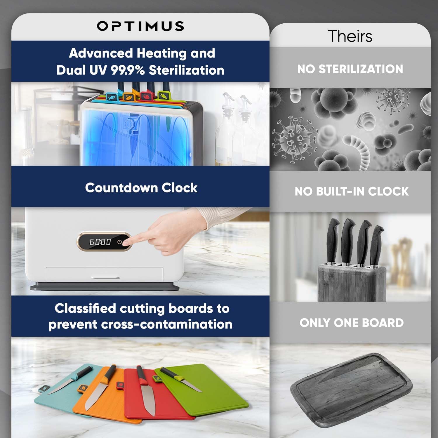Enjoy Delicious & Safe Meals – Use trustworthy tools around your food. The built-in purple light helps keep your boards and knife blades hygienic by eliminating unwanted germs.