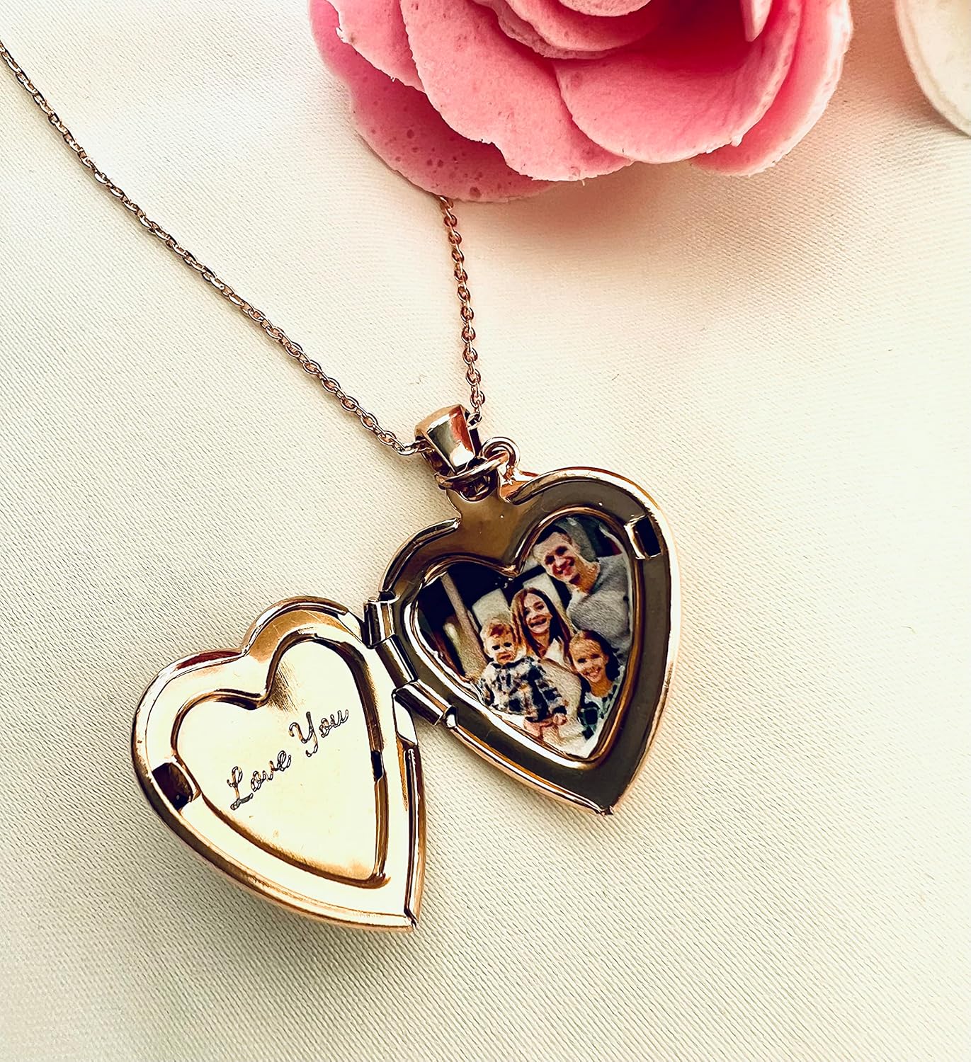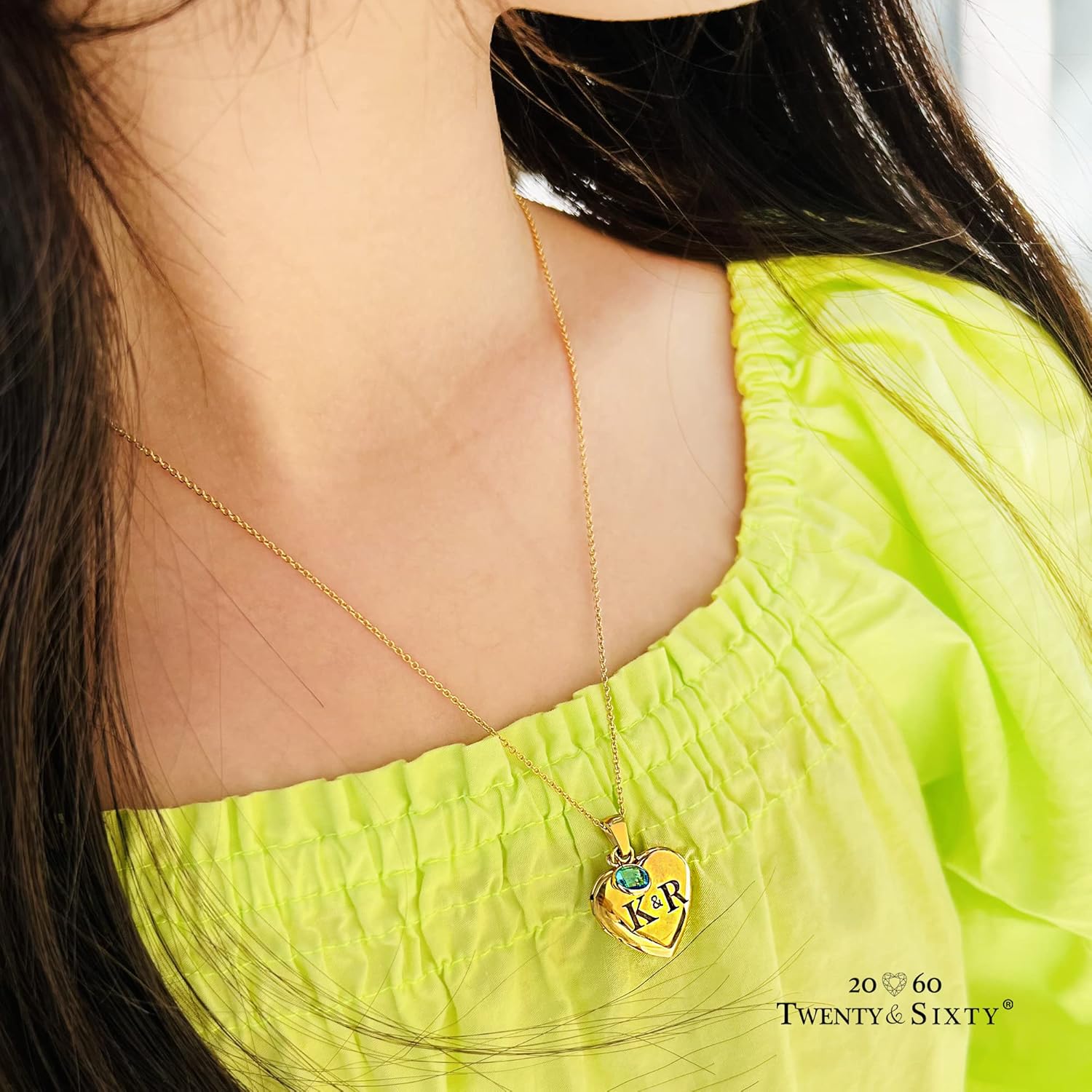 Twenty&Sixty Personalized Heart Locket Necklace for Women, Girl, Kids, Holds Pictures, Birth Flower Personalized & Engraved Picture Locket Necklace Gold/Silver/RoseGold