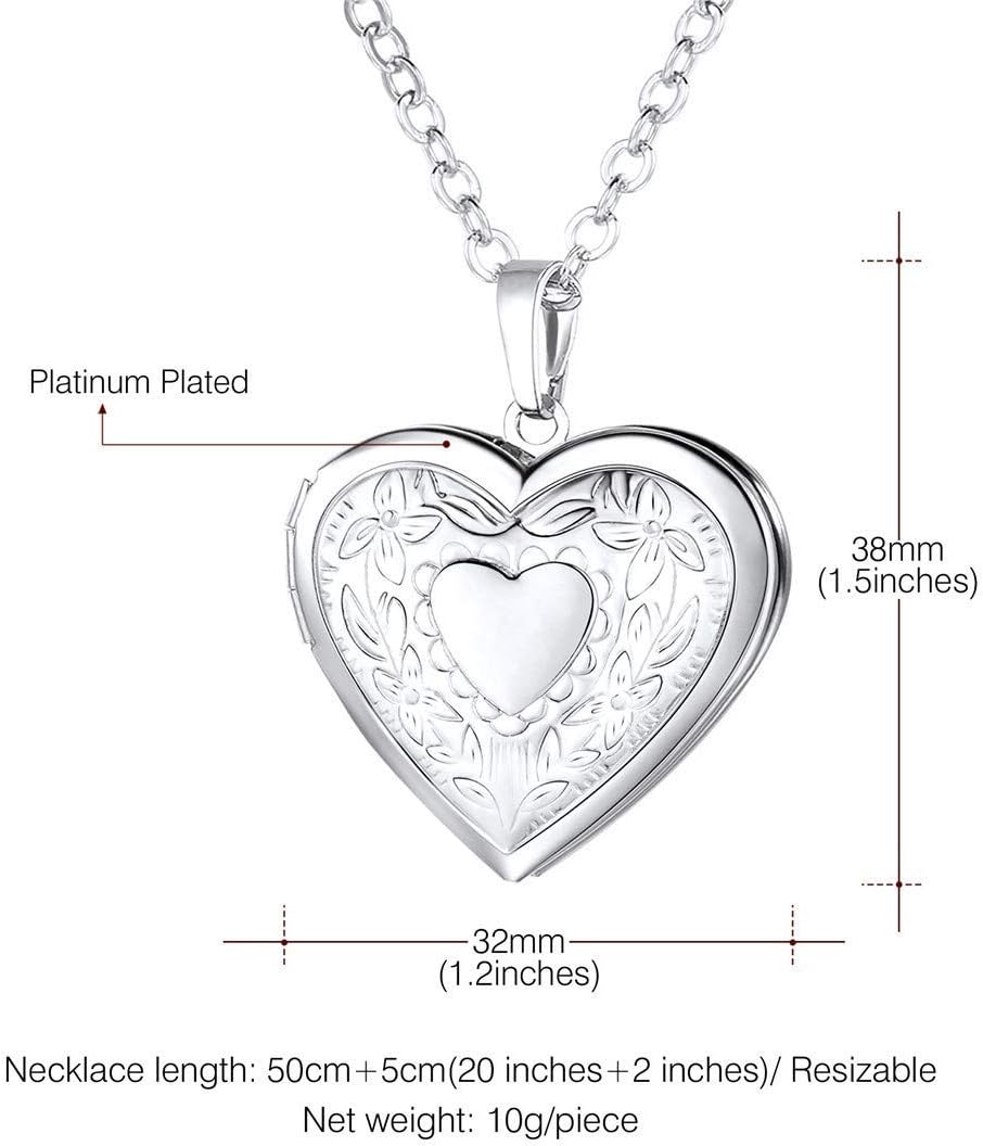 U7 Women Locket Necklace Platinum 14K Gold Photo Lockets that Hold Picture,Chain 20 Inch Personalized Gift Custom Love Heart Image Necklaces