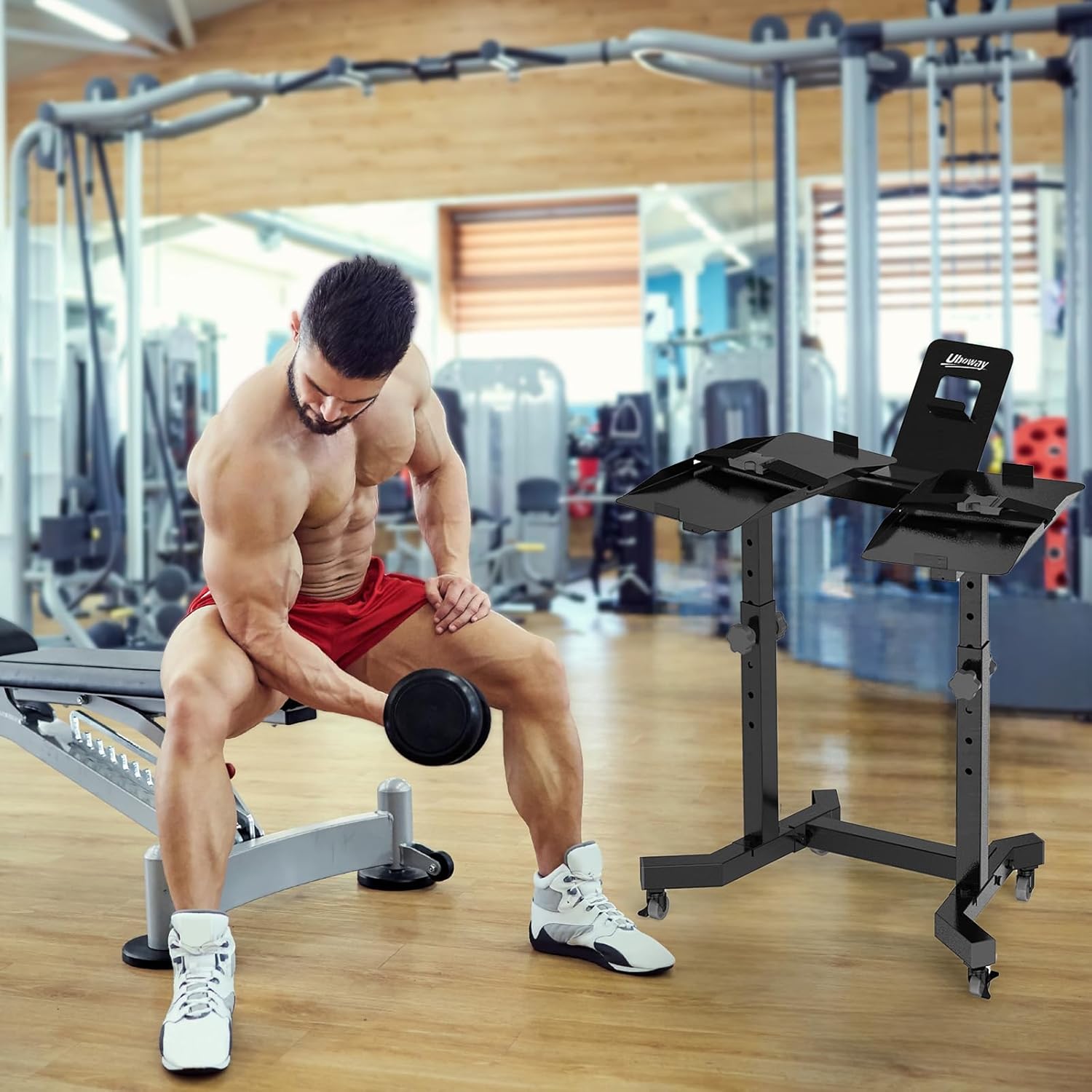 [Smooth Wheels & Tablet Holder] The dumbbell weight rack features four wheels for easy movement around your home gym, and two of them are lockable to keep it in a specific position. It also has a tablet holder for convenient access to your workout routine on your device, allowing you to keep it within reach while training.