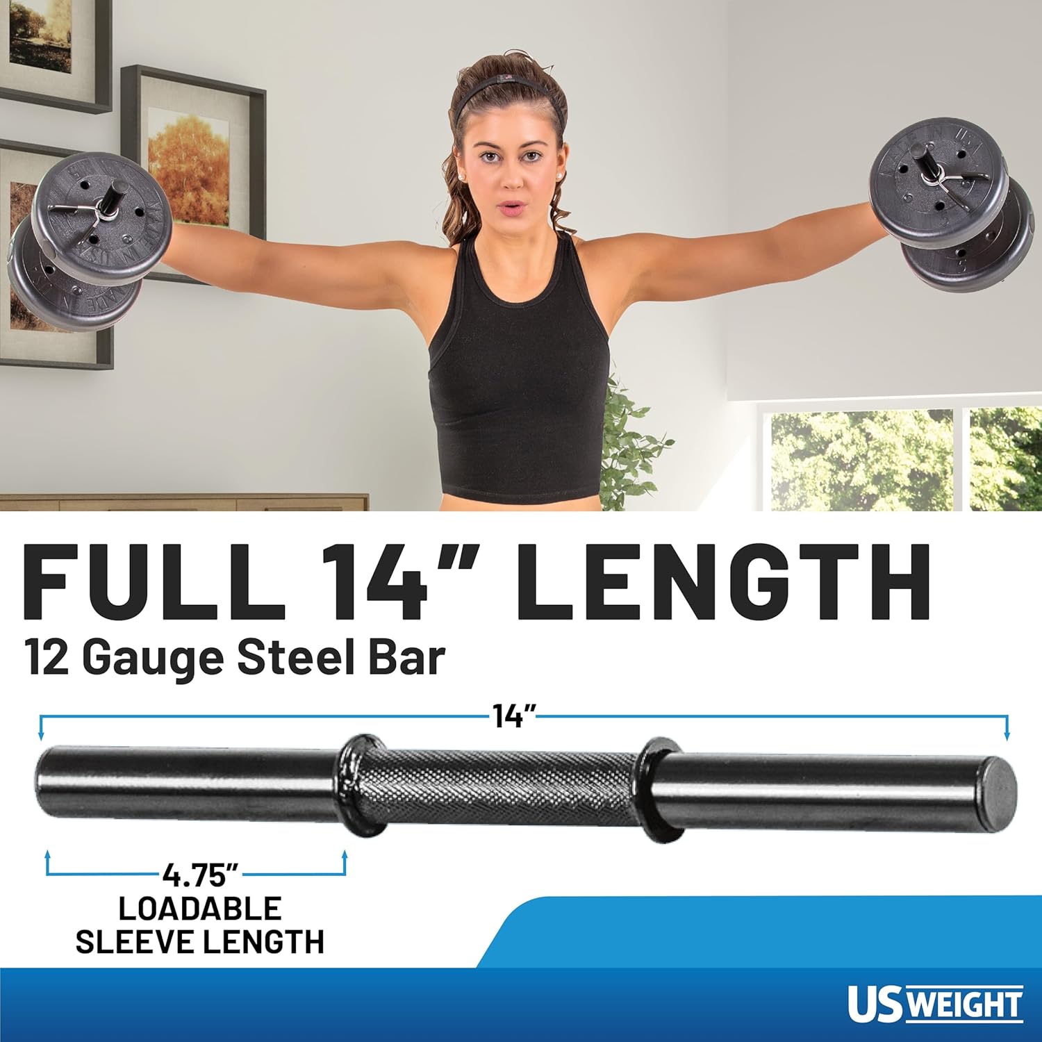 US Weight Adjustable 42LB Dumbbell Set with Spring Clips, 14″ Knurled Bars – Made in USA, Essential Home Gym Equipment for Strength Training