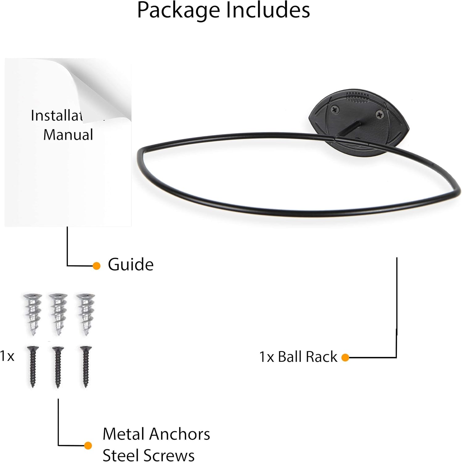 Easy Installation: Sporta wall organizer ball holder come with pre-drilled holes and screws to make installation a snap. Select your desired location, fasten securely and you’ll instantly have a fashionable, functional way to organize and display your footballs.