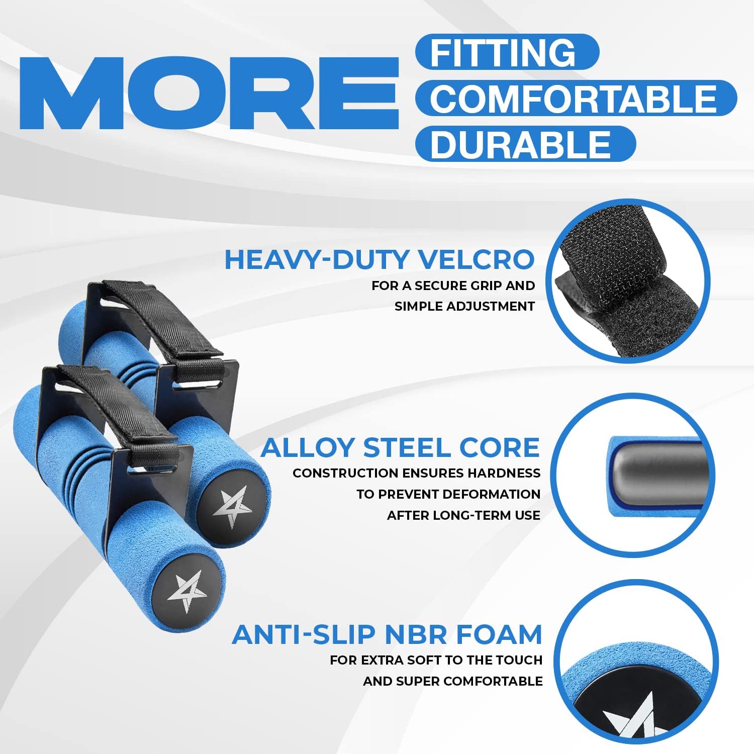 ADJUSTABLE STRAPS FOR SECURE HOLD: Tailor straps with velcro, allowing from 3 13/16 inches to 4 3/1’’ inches length, which keeps weights in the right place at your hands; Walking dumbbells with handles offer greater adaptation to many exercises